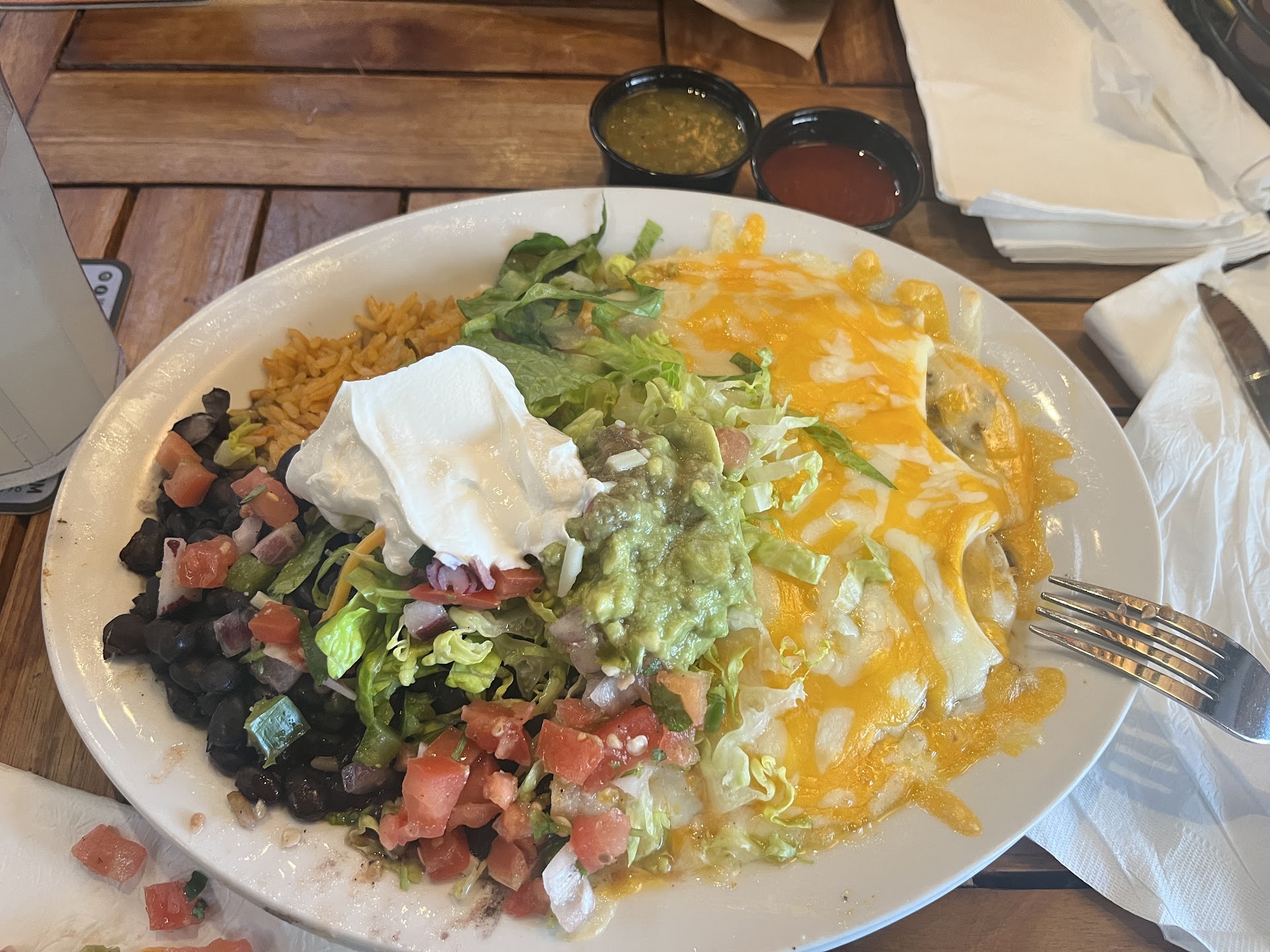 The food though was especially underwhelming. Ordered the caprese sandwich and the turkey club wrap, and both were the definition of “meh”. Not saucy or very flavorful, just a mesh of ingredients to make a wrap and a sandwich. Felt like there was a lot missing. Granted, the side of fries and tater tots were amazing. But the main should be of similar quality and we were left wanting something else.