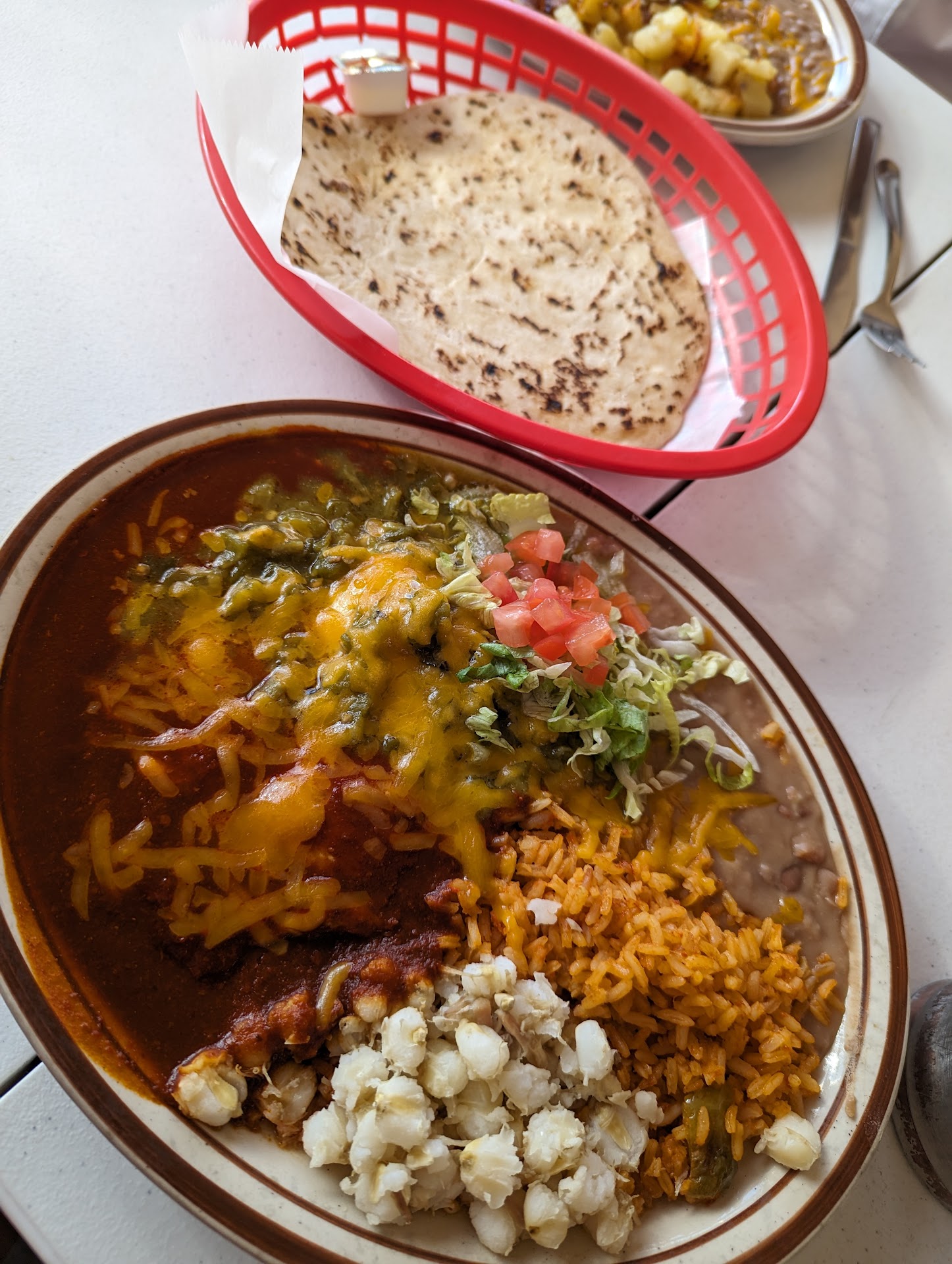 When we walked into Valentina's we knew we had something authentic. It was in an unassuming strip mall area with not much of a sign. Really the only way we knew about the place was word of mouth. My cousin had mentioned it when we were talking about great Mexican restaurants in town. We found it was enough, it was right off Alameda. We walked into a joint that felt local. No over-the-top stuff hanging from the ceiling, no mariachi music blasting to make it feel "more Mexican", just a decent place with some tables. it did have a nice pallet of color and decor. A couple Frida paintings were up, and a calming mural of a countryside. We grabbed a standard booth and perused the menu. It had all the staples you could ask for. Thing was, I wanted everything. When the waitress came over I asked for something with a tomal, a enchilada, and a chili relleno. She said that's not on the menu but I will make it for you. hearts! Everything came out within 15 minutes, hot and ready. We were not led astray, it was the best Mexican I had had in a while.