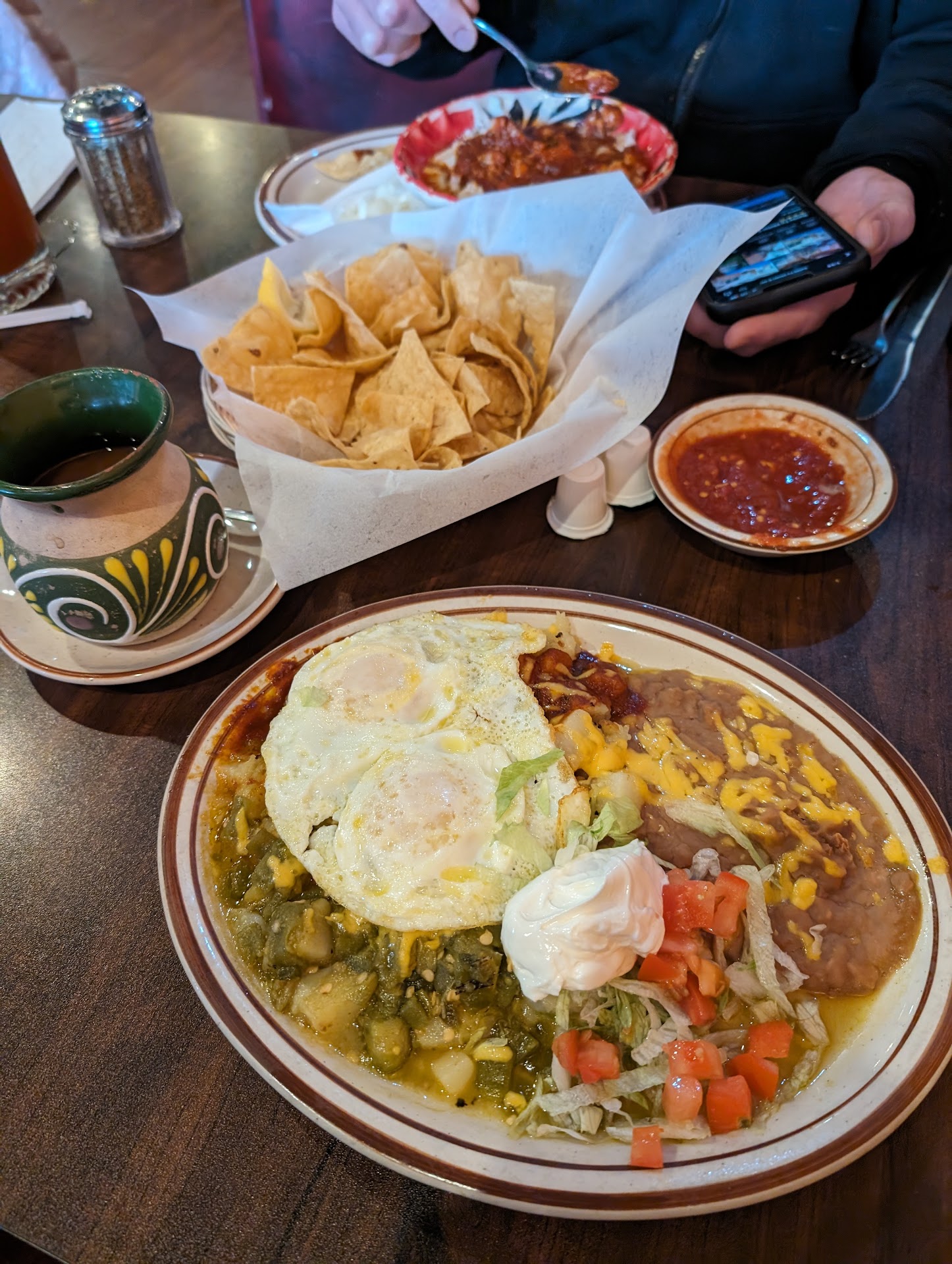 This is a conflicted review as iv had a mixed experience there. The food itself was great and close to some of the best new Mexican food ive had in Santa Fe. I ordered the breakfast burrito with chorizo and let me tell you, the red chili had a wonderful heat and a full bodied and hearty flavor while the green chili was acidic but not overwhelming and in combination played well together. The potatoes where cooked wonderfully and were seasoned just right and really took the chili flavor and ran with it to the moon. Unfortunately, maybe the waiter didn't hear or maybe there was a shortage they didn't tell me about, there was barely to no chorizo in the burrito. Once i got halfway through i started pulling the burrito apart, fork and knife, and not a nugget of chorizo was to be found which was sad as that would have made it a 5 star for me. That and the margarita that was ordered, while it was a deep glass and well iced, probably had about half a shot of tequila in it even though it was priced in the opposite index.