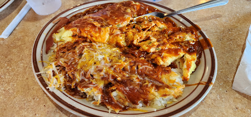 I ordered the build your own omelet and requested extra Spinach and mushrooms with bacon and onions with green chile.