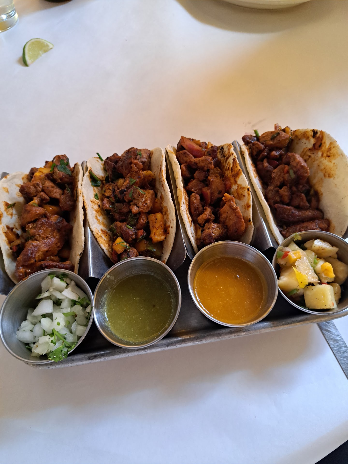 The fish tacos, featuring Mahi Mahi, Pico De Pina y Mango, Guajillo Aioli, cabbage, and avocado, impress with their crispy batter and lightness. While the flavor of Mahi Mahi may be subtle, the combination of tangy Pico De Pina y Mango and creamy Guajillo Aioli provides a vibrant freshness that delights the senses.