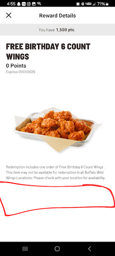 Read moreSo I just left the establishment, did wait at the front of the house for about 10-15 minutes wondering if anyone was even working the front. Other people standkng in line weren't happy either. Saying things like, "Does anyone work here??" Wait for a booth for about 35 minutes. After dealing with the guy having a stroke or something with putting in my phone number. He repeated it back wrong like 5 or 6 times, ended up having to put it in for him. After getting up to look around and seeing people who just walked in the door getting seated at a booth, we pointed out 2 more open booths and asked if we could be seated now at one of those. The trainee at the front of the house said, "Yes. I actually forgot about you guys." Impossible, we were sitting right there.. whatever. I had a reward for 6 birthday wings which originally our first server said it was okay. We ended up with another server who then later blamed the system then manager that he couldn't do the reward. 1st blaming the system because it couldn't find my number, (okay but I have my app). "Well maybe you changed your number." (Nope I've had this same number). "Well maybe you need to verify the number." (Okay? I'm showing you the reward). "Well my manager said there isn't anything he could do. But I'll check again." Then he comes back, "It's just weird we couldn't find you in the system, but my manager said that we couldn't give it to you because you can't combine it with the pick 6 deal." Then I showed him that it doesn't say that anywhere on the reward, which is why it should be fine. Then I showed him the other rewards where it does say you can't combine with any other deals. (See pictures). Idk seemed like such a stupid thing to be going back and forth over. And then on top of that like shoving the "I can't find you in the system" thing down my throat. That isn't anything I have control over, not my problem. I don't know but as someone who works cust. satis. this was definitely solvable 💯. Since we paid cash, I have a feeling that they're going to take the 6ct wings off and just keep the rest. Seems like the BS. DEFINITELY...
