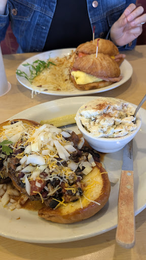 Read moreThis was my first time eating here. The hostess/server was very nice and sat us right away. Our waiter was very friendly but he forgot our onion rings that we wanted as appetizer. My mom ordered the chili verde with cornbread. At first it didnt look that appealing but she said it was delicious and the cornbread was the best she ever had. I had ordeshered the quiche trio. It came with quiche florentine, loaded potato soup and salad. I am not a cream soup person but i have to say that was the best potato soup i have ever had. The soup was very creamy, hot, had bacon, green onions and cheese. Kudos for that soup. The salad was nice and fresh. The quiche however was not to my liking. It was not the spinach florentine that i know and love. However, i had mentioned to the waiter that i was disappointed. He asked if i wanted something else and i told him the soup was so delicious that it made up for the quiche. He mentioned it to their manager, Brenda, who came over to find out why i didnt care for the quiche. She was very nice and understanding. Because of her kindness and the kindness of their staff (and the delicious soup and chili) I gave this place 4 stars. I will try it again next time...