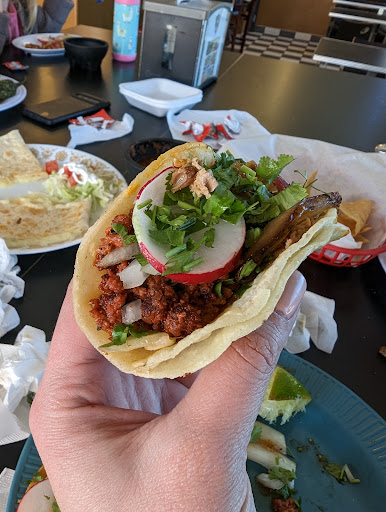 Read moreA small little taco stop, among many, in Santa Maria. The chorizo, barbacoa, and pastor were great, but carnitas and pollo were a little bland to me. All the tacos are served with onion and cilantro, and then with radish, lime, grilled onions and a large pepper on the side. We came at lunch time and saw many locals (we're from out of town) coming and going from the bar area where they enjoyed a beer and tacos as well. I can imagine they would quickly run out of seating if it were busy, but fortunately we...