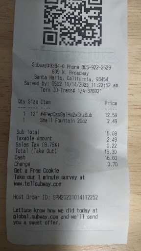 Read moreI wouldn't know how the service is because for the 3rd time in about 6 weeks we went by the subway on north Broadway at approx.8:30 pm last night only to be told that they were closed. Funny, the girl was standing there looking like she was ready to help us and the door was unlocked, but, according to her, they were closed. And that's all she would say when we questioned her about the sign that said they were open until 9. So one star is...
