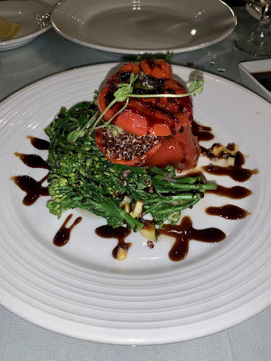 Read moreI dined here while staying at the Historic Santa Maria Inn and it was a comfortable upscale experience. My roommate and I went down for dinner between 7:30pm and 8pm and the host welcomed us with a smile and showed us to a table near the fireplace. . It was a Tuesday night so the restaurant was fairly empty. There were only one or two other parties in the establishment. Knowing this place is pricey we kept it light and simple with water and lemon to start and skipped the alcohol. I order the stuffed quinoa ratatouille as my entree and a side of shrimp as a protein. . The servings were pretty big so you definitely get what you pay for. They also brought bread and butter to the table which is a staple I miss in most restaurants. The dish was not overly flavorful, but very filling. The shrimp was well marinated and had a thyme, lemon and butter profile so herbal and savory. Service was prompt and they did not rush us out although we were the last party to leave. Would definitely dine here again and recommend to anyone seeking a ritzy,...