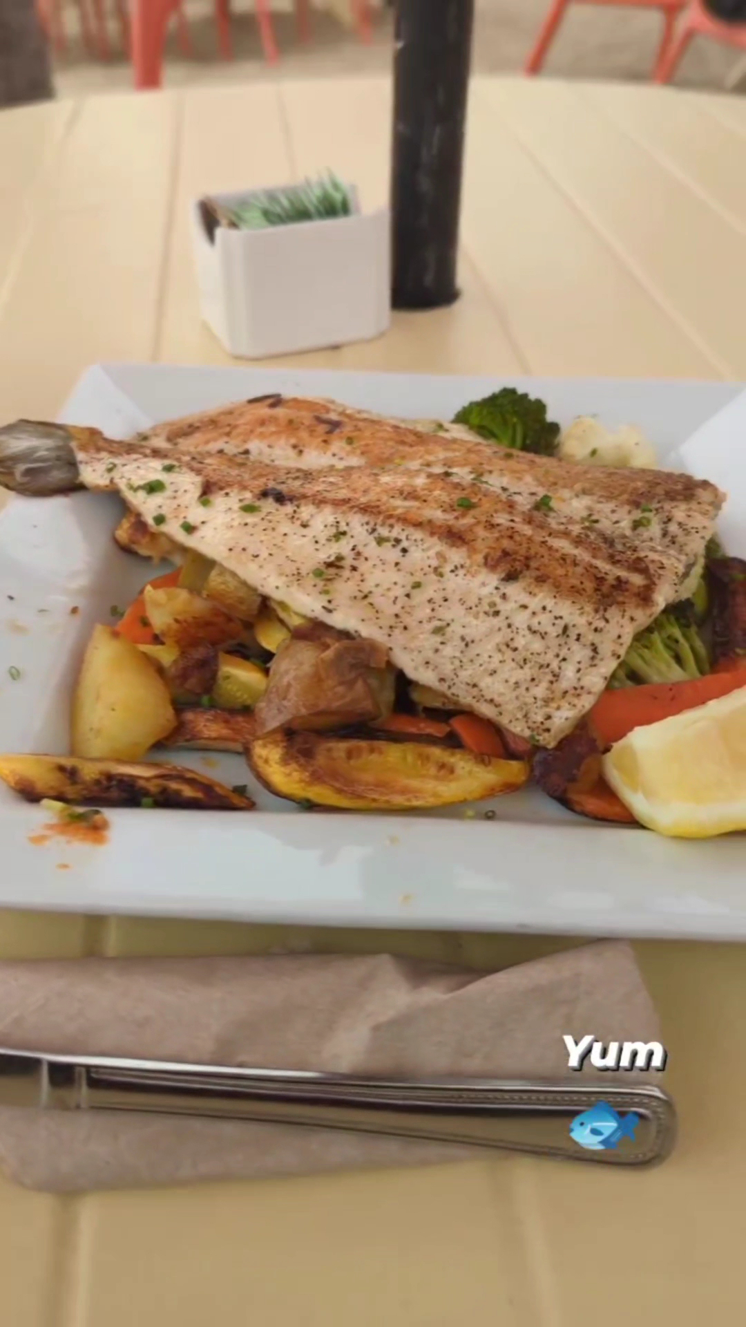 We were given the option to sit inside or outside on the sand and told them, first available. We sat outside and was very happy, however, because this is beach/sand seating, the chairs sink very low! Hahaha!