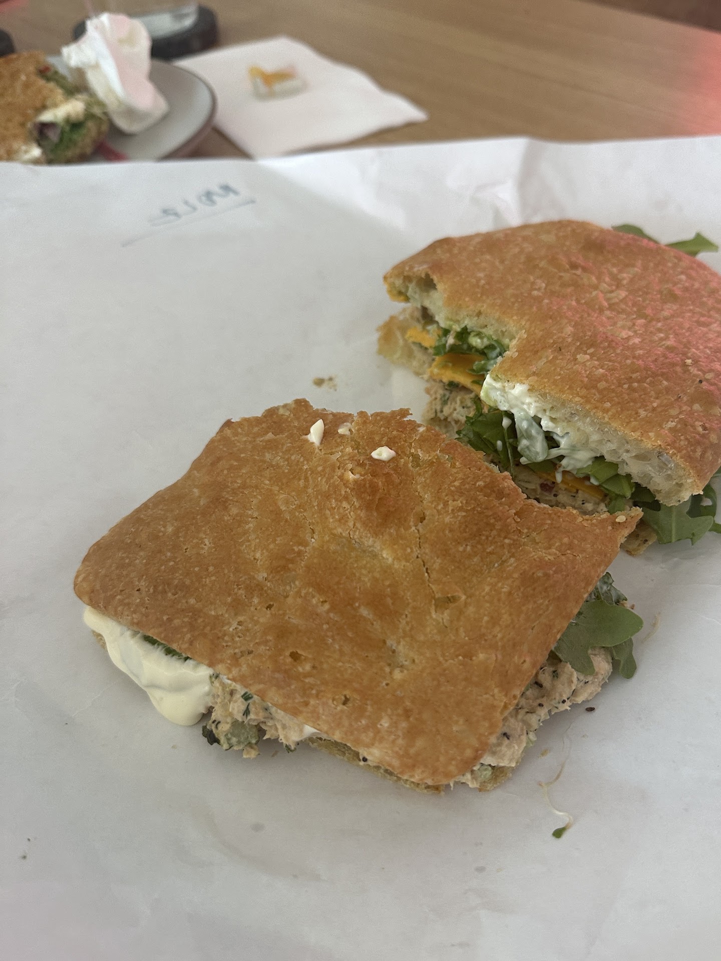 We got 2 sandwiches: tuna and mozzarella. We didn’t finish either one and tossed them both in the bin.