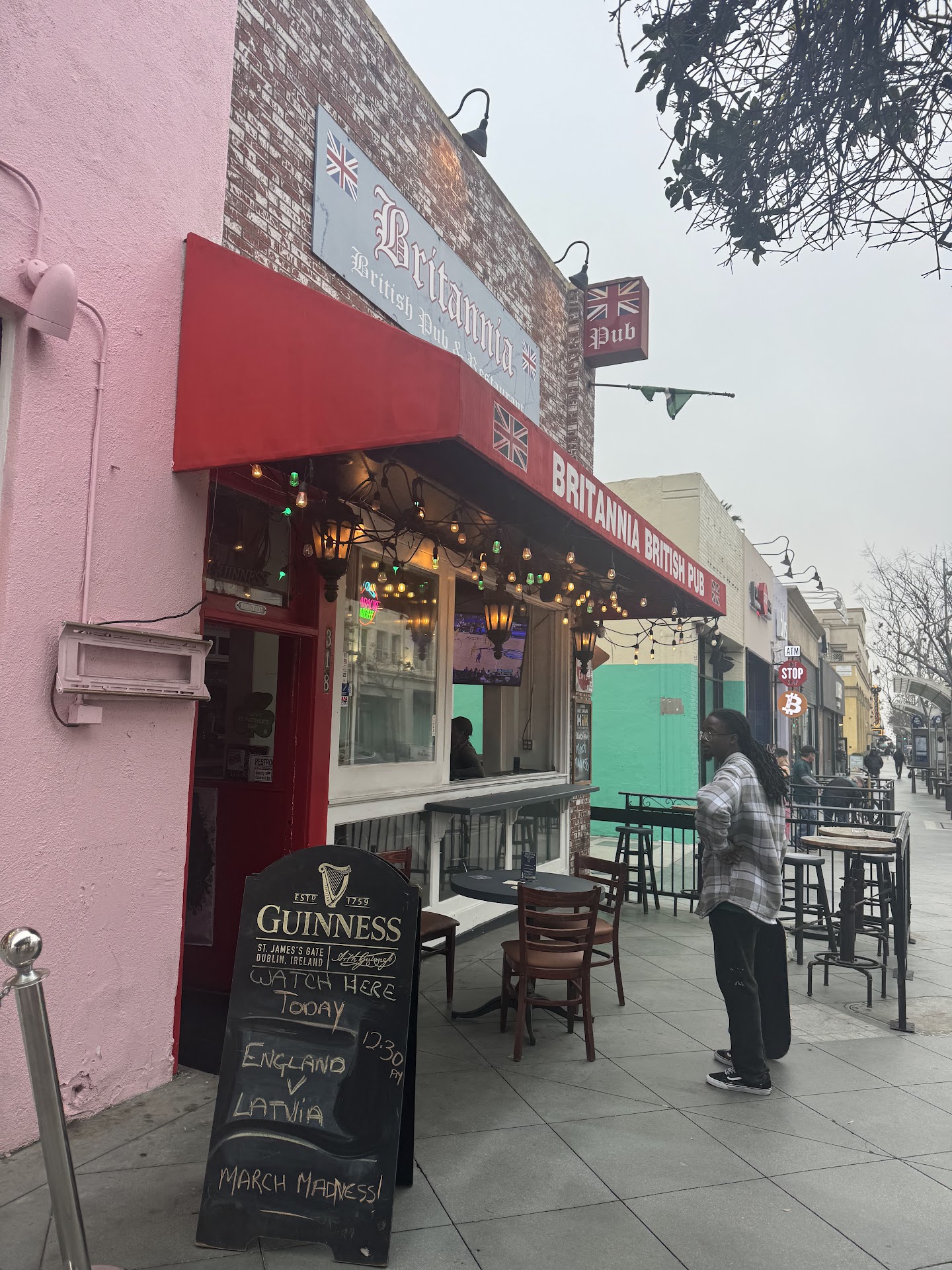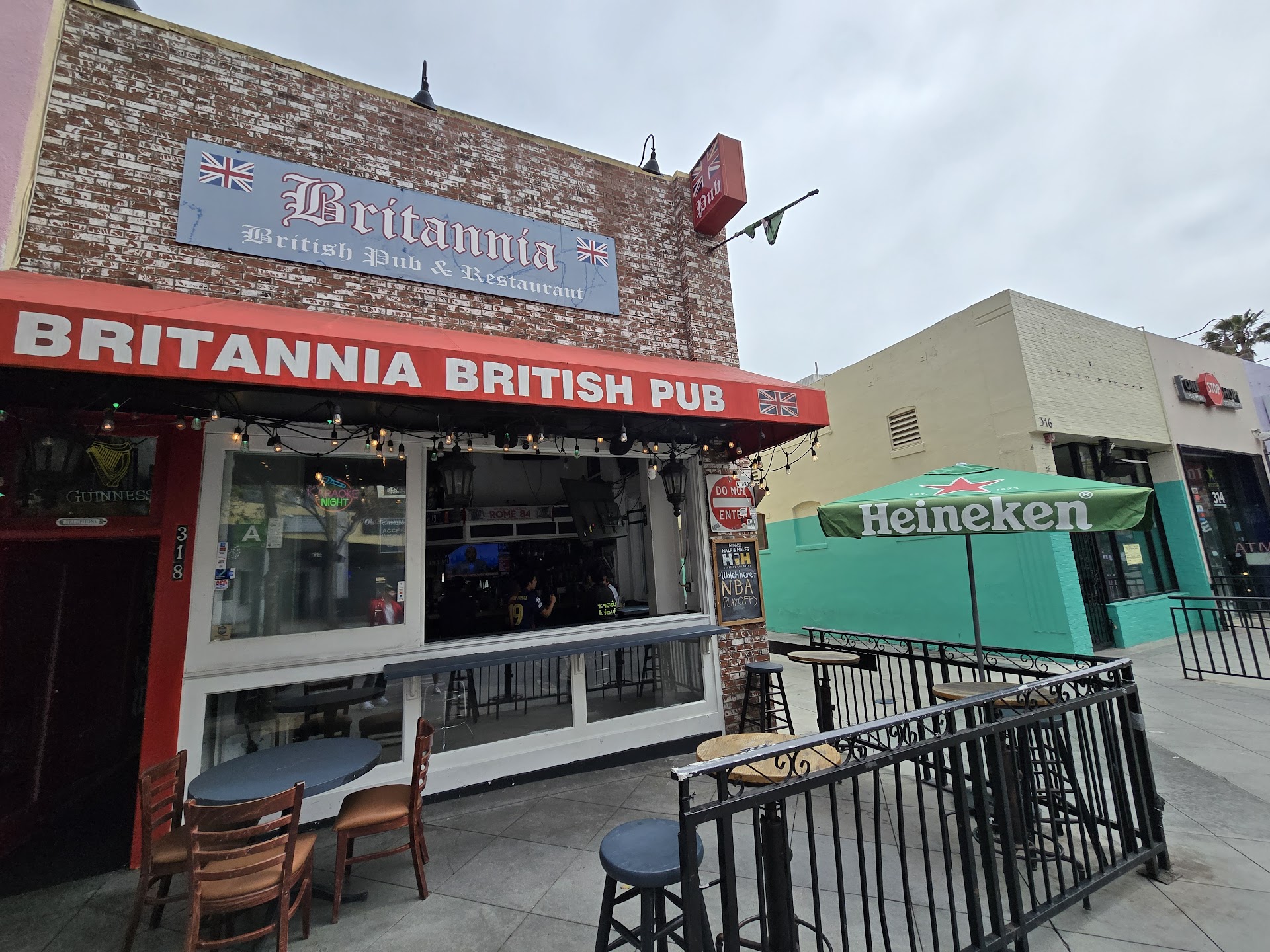 The Britannia British Pub. It is April 30th, 2025. It is my beloved cousin's birthday. We normally take a simple meal in our area and during which I deliver my gifts. This year was different. In our phone call the night before, we both expressed a sort of wanderlust, and so we began driving without destination. The road led us to a favorite coffee shop in W. Hollywood, and we discussed where we would go next. It was a dreary day, overcast, so we decided to seek the sunshine and fresh air of Santa Monica. We went to a city parking lot right on the beach, with the intent of dipping a toe in the Pacific Ocean, thereby ending our short adventure. We looked at each other and noticed that we were not dressed for a beach outing. We noticed that the hike to the shoreline was nearly 200 yards, and both knew that our event was over. We both began to drive home. We had failed. I thought about lunch. "Let's get a sandwich or something at the Santa Monica Promenade," says I. We were both a bit peckish, so we took a spot in a public parking lot a block away and headed to our future. We had not walked a full block when we heard people, happy people, watching a football match, cheering. As we approached, we noticed a friendly little bar, people smiling, and some match on the many TVs. "Let's go in." We entered the Britannia Pub. It is on the old Route 66. It has a nice outdoor patio and big open windows so that guests can also enjoy the fresh ocean air. Very nice. We were greeted by Max, the barkeeper, who smiled so broadly at us that we were forced to smile back. As it turns out, we had arrived during happy hour, and we were handed a menu. There was a standing chalkboard by the door that read, "Fish and Chips, $7.50." We like fish, so we ordered 2 of those. Neither of us drink anymore, so we ordered two Diet Colas. The fish and chips arrived in a few minutes and were fresh, crispy, and delicious. We asked about what teams were playing, and the crowd was filled with people who were only too happy to describe the game. We got lucky by finding the Britannia British Pub. It is an inexpensive and fun place. The food is delicious. The crowd is welcoming and advised us that the drinks are strong. The Britannia British Pub 318 Santa Monica Blvd, Santa Monica, CA 90401 Website/Menu: britanniapub.com Phone: (310) 458- 5350 Highly recommended. Great fun, good food....
