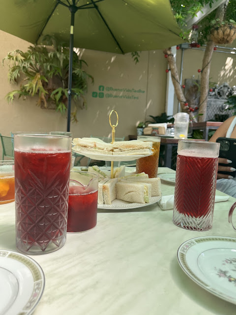 In our box we received two cucumber tea sandwiches, two small cookies, two warm scones, an empanada, an iced cinnamony boba tea as well as jam and housemade clotted cream! It was so good and fresh, that I bet the Queen of Afternoon Tea on TikTok would approve. If youâre wondering whether you should stop in, this is your sign! Check out their website for the full menu; you can stop by to get a drink to go or sit down and enjoy their treats in their lovely garden patio. Either way you choose to enjoy Buena Vida, you'll have...