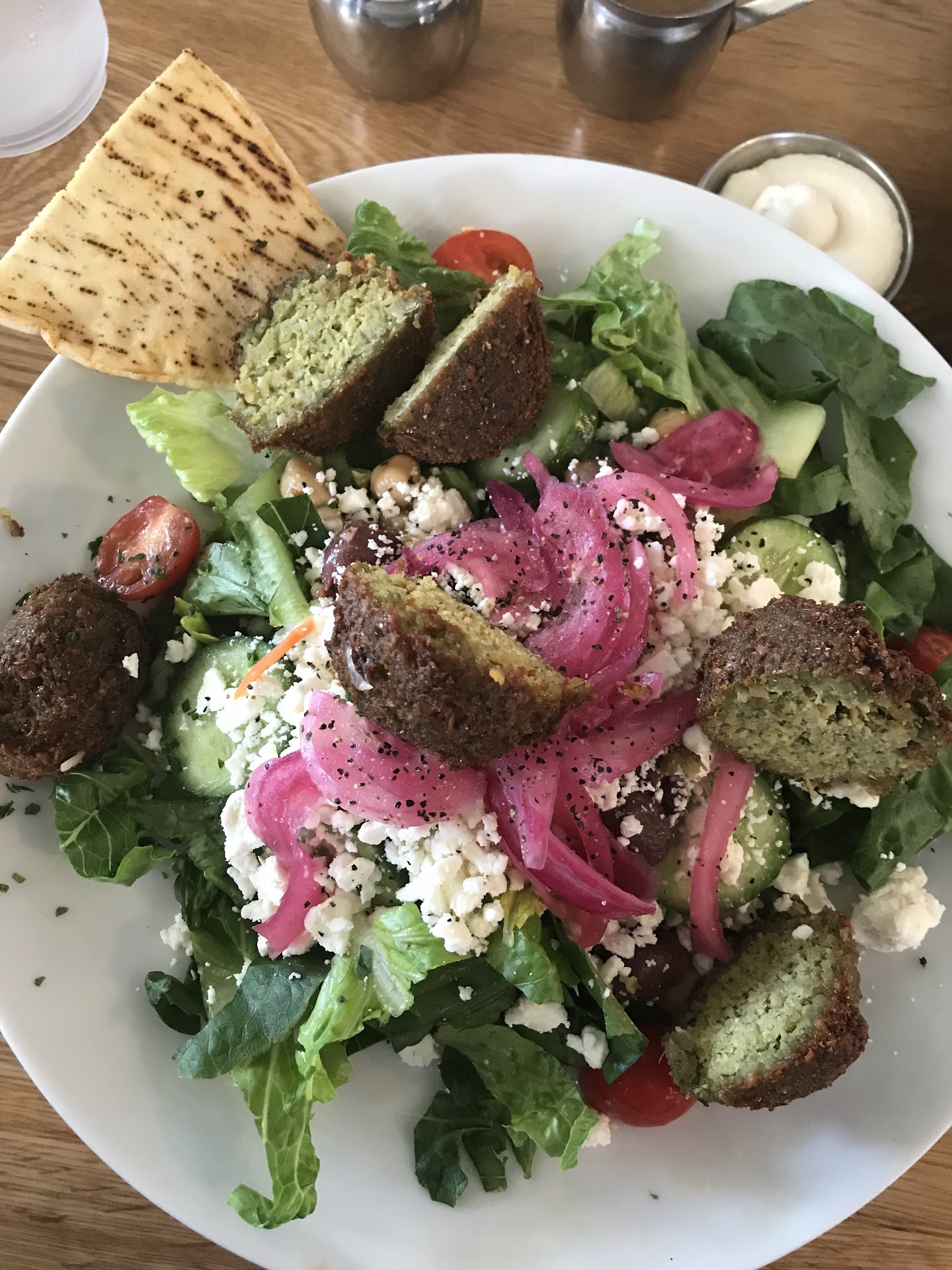 My colleagues and I visit at least once a week, but today I tried something new and ordered the Mediterranean salad with falafel instead of chicken. Since the menu clearly says, "vegetarian lovers can also add falafel to any salad," I expected to be charged $14.50, the price of the salad with chicken.