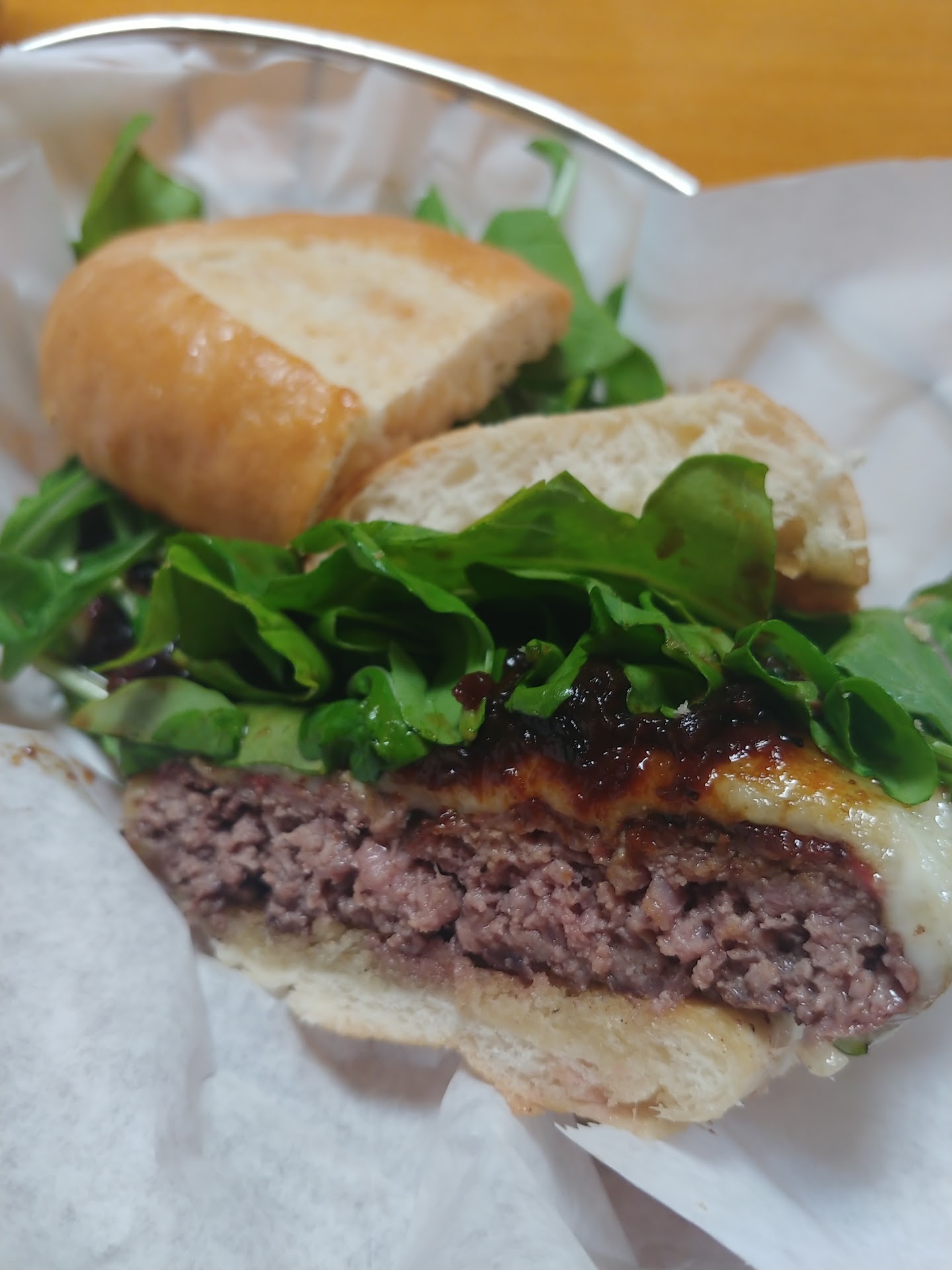 They seriously DO NOT do any changes on the burger, it comes as is. The only option you have is how you would like your meet cooked. You can add fries to each burger for $2.50 or get a basket for $5. The fries are the thin kinds with herbs, not bad. There is no ketchup for those who use it. Comes with a garlic aioli. The famous burger, not that impressed. Comes on a sub bun, nothing special at all, I'm not even sure they do anything to it, but slice it in half. The meat was cooked well, for a burger. They toppings in the burger work well together, but the onions were very sweet, also made the burger very messy so your hands get very sticky. It's a pretty larger burger, could perhaps share it with someone if you get an appetizer.