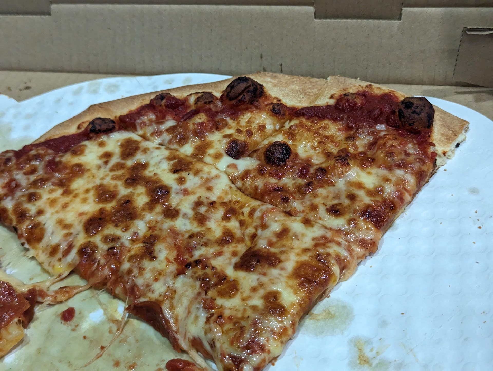 Da Works - $11.99 (personal) - Made with sausage, pepperoni, mushroom, green peppers, & red onion - 7.5/10
