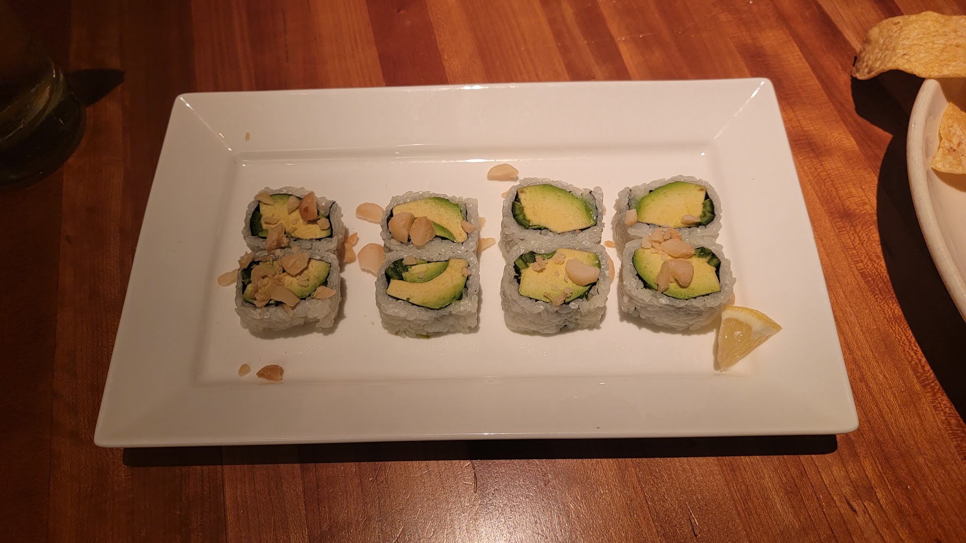 After that my girlfriend had the avocado roll and I had the nigiri plate, both were great but the spicy mayo did taste different from what we're used to and my girlfriend didn't like it. For entree my girlfriend had the veggie burger with fries, the burger was OK, neither of us really liked it, but the fries were good. I had the Hawaiian Ribeye with fully loaded baked potato, both were outrageously good, probably the best baked potato we've ever had!! The Ribeye was definitely different from what I'm used to, it was covered in a sweet Hawaiian sauce, but still tasted great and the sear and temp were perfect (medium rare).