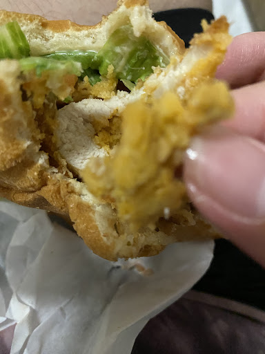 Read moreDO NOT ORDER FROM THIS LOCATION. I placed on order through Uber eats and recieved RAW food. The chicken sandwiches were undercooked - evident from the coating which was not crispy, but still as a batter. Additionally, other items in my order were incorrectly prepared and I had condiments placed on my sandwich that I specifically requested be ommitted. I also had missing items. I had to throw away the entire order and felt nauseous from the quality of the food.