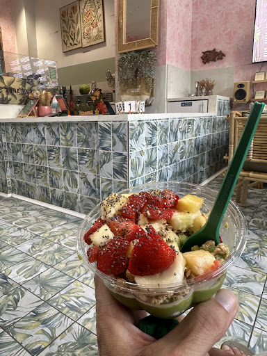 Read moreAbsolutely amazing experience! The interior of this place was like no other and more than definitely made you feel like you were in Hawaii. Definitely a very picturesque place! However expensive, the açaí bowls were also amazing here, the bowls and all the little details they incorporated into making it made the experience even more worthwhile. Açaí bowls also have an amazing visual presentation. There was a really good amount of seating and everything all looked very nice and arranged orderly. The only two complaints I would note is that there were a couple bugs flying around and the music was a bit too loud, though that’s just me. This place is really phenomenal! Everyone walking by the place was eyeing the inside of it and making it seem like they wanted to go in. Highly...