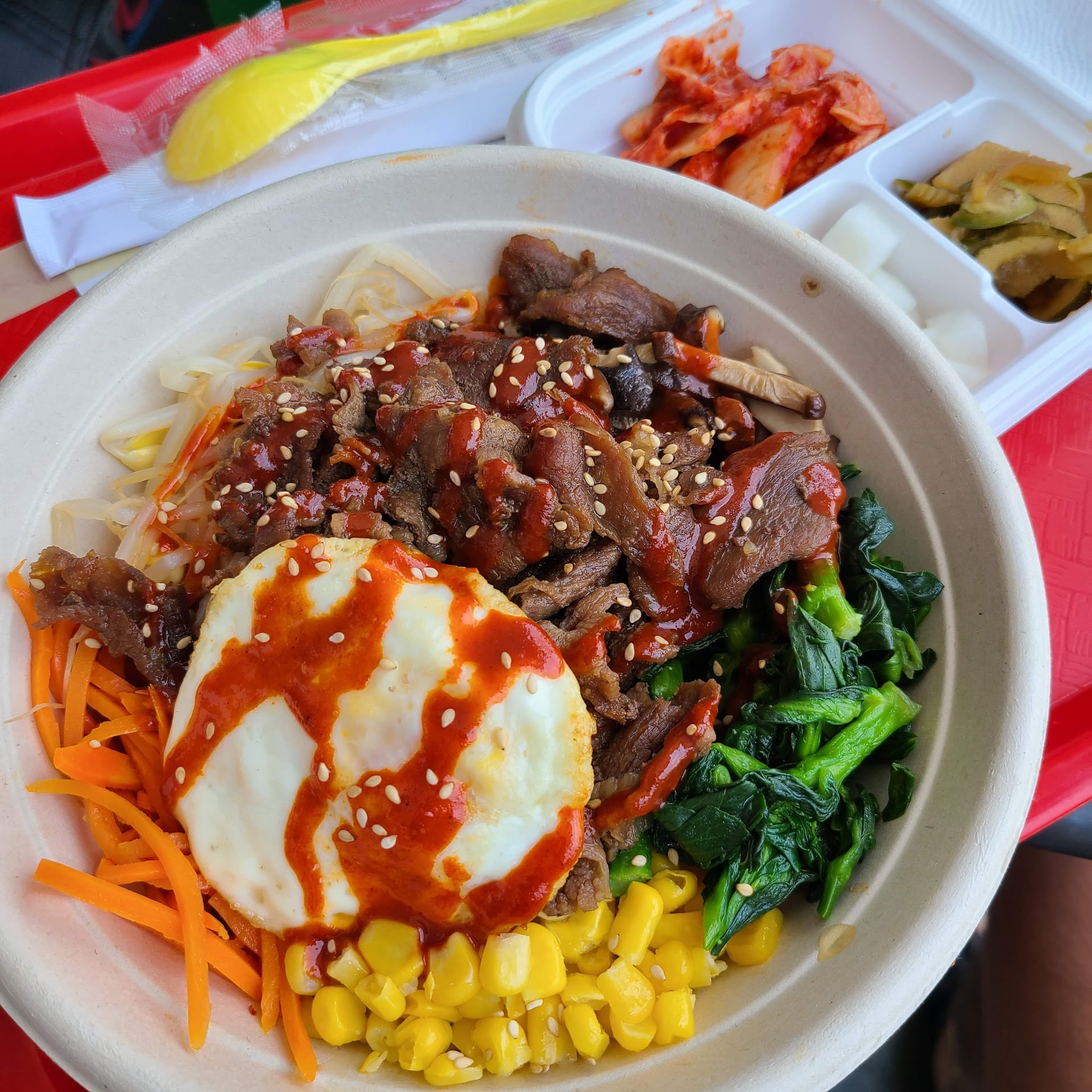 My final regret was the wide use of single-use plastics. The trash was overflowing with plastic cutlery and bowels....all going to the trash dump. I found this unusual, as most other Korean "fast food" places I've experienced, either use reusable metal cutlery and plastic bowls, or modern compostable bowls and sustainable wooden cutlery (for which I'd be willing to pay a little more for).
