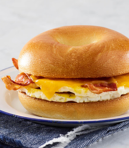 We love all their bagels and usually get a bag to go, but today we stayed and ate there. We had a great lox sandwich on a bagel which also had cucumber and onions with a few capers. It was perfect. We also had a bacon and cheddar cheese sandwich on a plain bagel. Their coffee is super good.