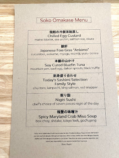 Read moreWhat a gem, my husband and I checked into the Fairmont hotel and I noticed this cute sushi spot at the corner of my eye. We were starving and let me tell you, what an experience. Its cute, small, quant sushi bar/dining. We were greeted by Angel, and guided us through the menu selections. The service was on point, clean and the sushi OMG comes from Japan. All we can say was wow!! to every dish we ate. Also, Brian was super sweet and educated us on each sake paring we ate with our meal. Thank you Soko team for making our first day so special. Brian, Angel, Masa & Kei keep up the amazing work and art you present in your...
