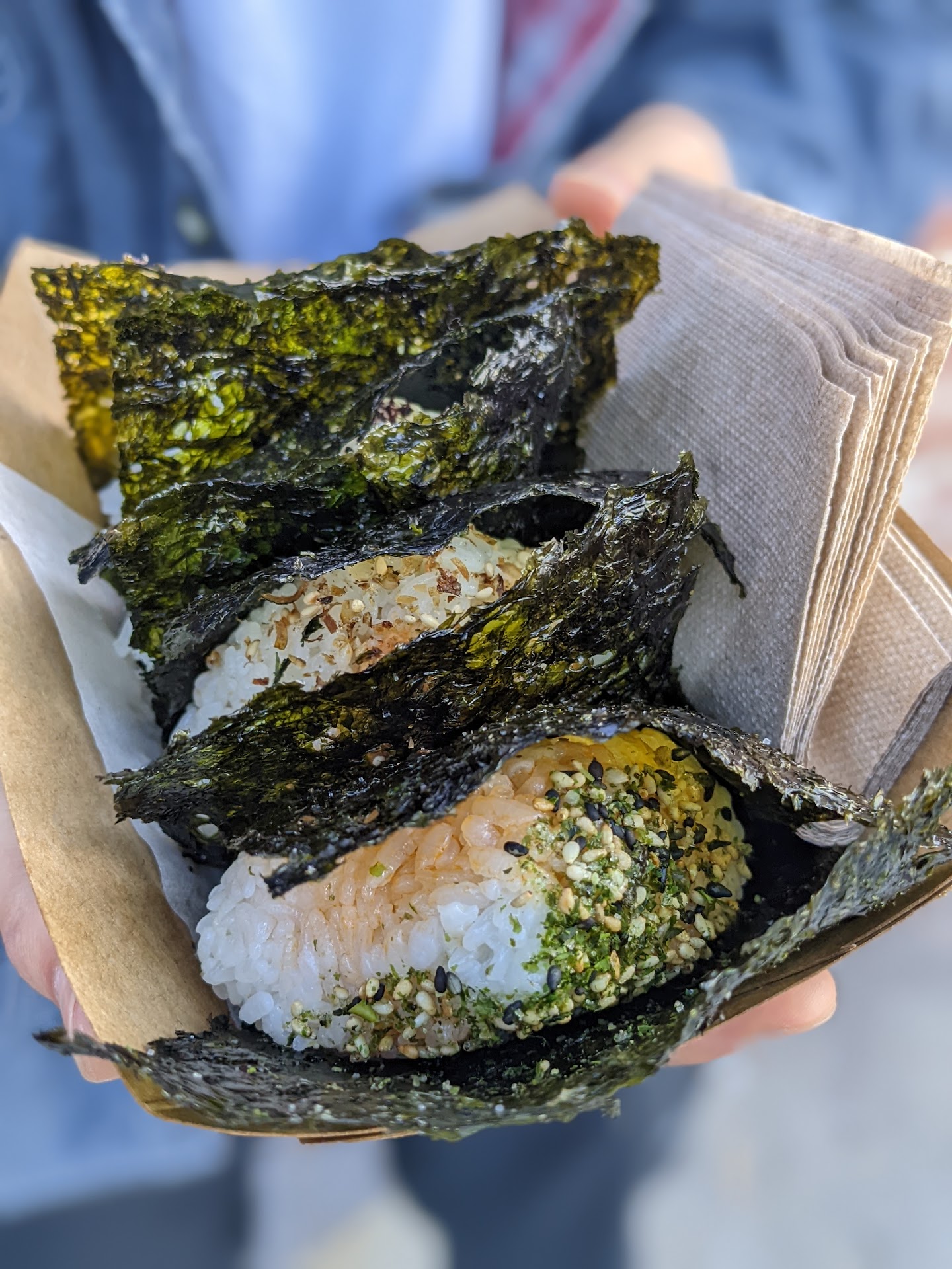 Read moreYums! Have been wanting to try this place for a while now! Came here for lunch around 1pm on a Saturday and there was a small line, but then again, the place is tiny!! I think Sunny Blue calls it omusubi, but I know them as onigiri - either way, very yummy and comfort-food :)