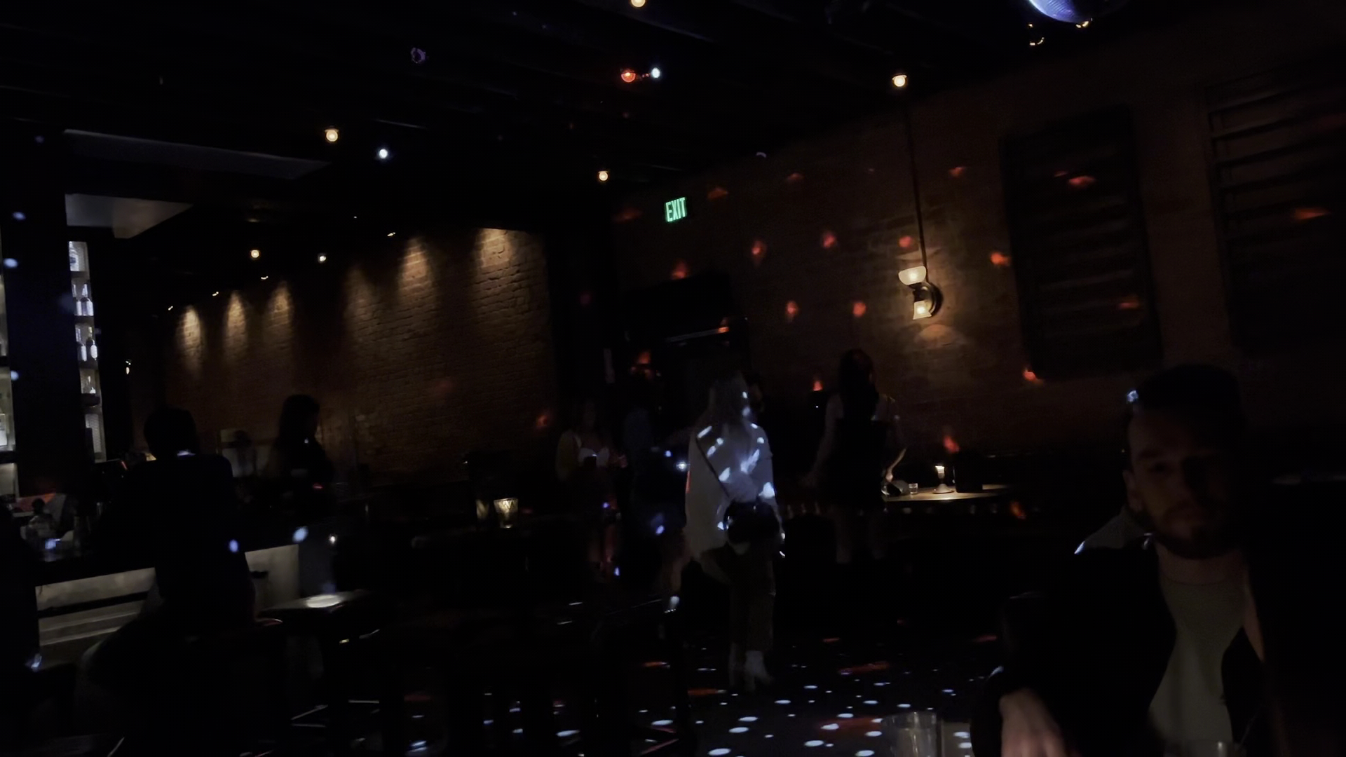Once inside, it's actually nicely lit for an intimate encounter. There is a whee little dance floor right in front of the DJ booth for the "whoo girls". The leather round couches make for a good place to chat and catch up with friends without being surrounded by a sweaty crowd. The bar is amazing, stocked with all the real bourbons and whiskeys that make a good bar, especially fitting the rustic wood interior.