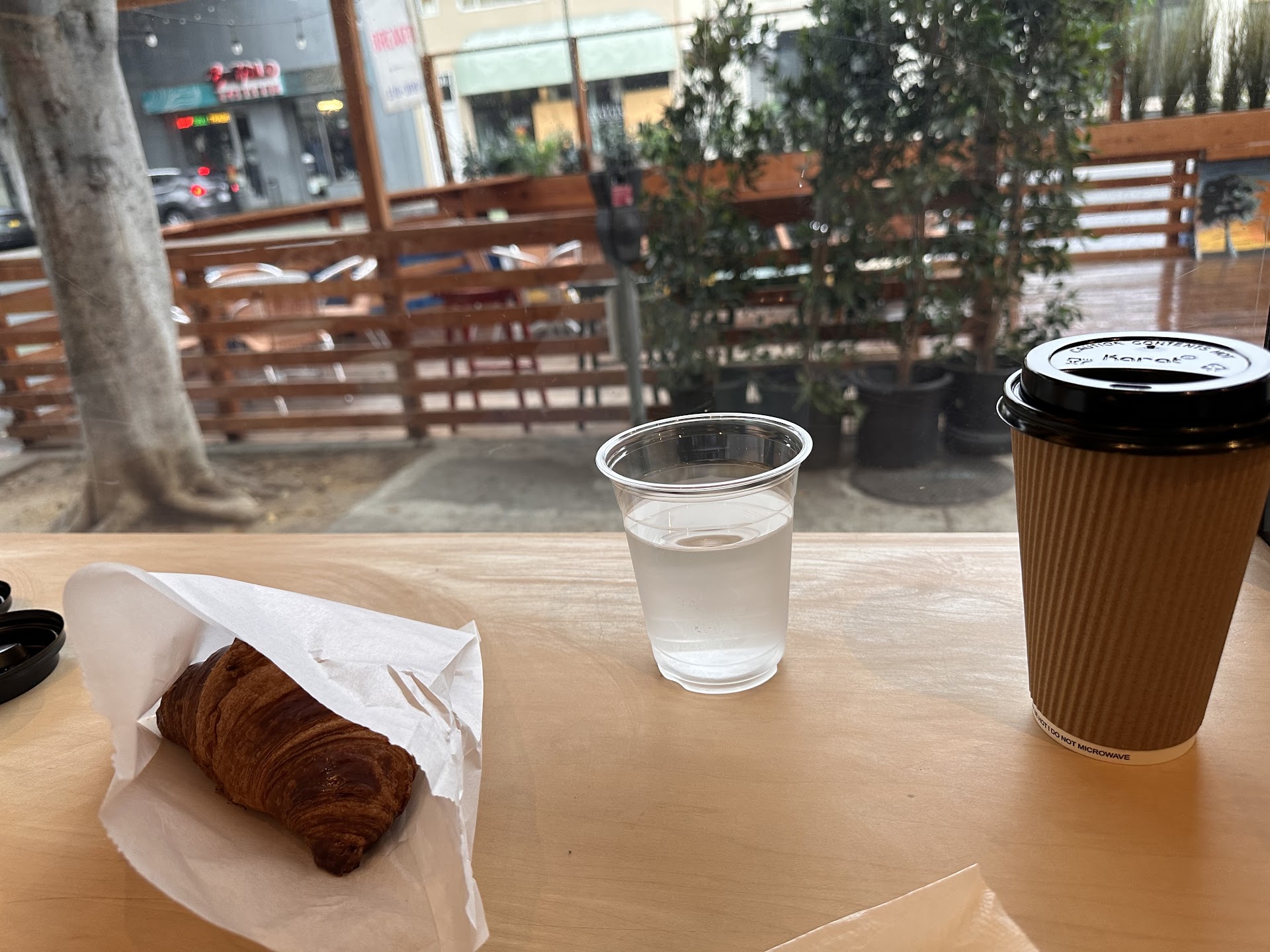 Met an old friend for coffee and breakfast here. The spot is lovely, the baguette sandwich spot on. My Americano was overly watered down, which was disappointing. It is supposed to taste like strong coffee, not big cup of watered down espresso. We were sitting on the patio and I had my 14 year old dog with me. I had a small foldable water bowl next to my chair. I guess it had moved a bit when he was drinking. The owner came out and rather rudely asked me to move it because "other people are going to have to sit behind you." I complied immediately (as I would have gladly done if someone if someone were sitting down behind me), but was a bit taken back by her tone and the need to come out and ask me to move the water bowl under our table. ? Oh well, we had a nice morning. But that last piece lingered, enough for me to write a review, which I almost never do. Maybe French people sound rude without...