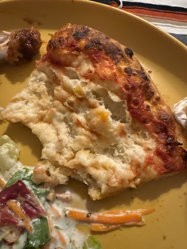 We ordered 5 pizzas for a staff event today. When they arrived, roughly 20 minutes after the initial estimate from Slice, they were cold and hard. The crust was thin, dry, crunchy, and gritty with corn meal. The pies had so little cheese they were nearly translucent.