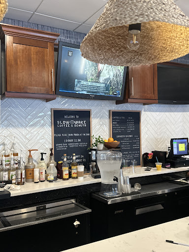 Read moreSlow Wake is located in Wyndham Garden as soon as you walk into the lobby, it's easy to find so please don't let it being in the hotel deter you from coming and checking this place out. We were on vacation from Tennessee and made this our morning breakfast stop for the time we were in the area. Tiffany was our server and she was great! She had wonderful coffee and food suggestions and both lived up to the expectations she set. We will definitely be coming back for breakfast while in the area. I had an apple cinnamon donut paired with a coffee and could not of had a better morning if I tried. For a donut, cinnamon roll, and two Irish coffees we paid less than $20 in total so I would say $1 - $10 dollars per person is an accurate estimate on pricing. While I got the donuts they also have breakfast bowls, sandwiches, and burritos as well as coffee, boozy coffee, and mimosas options. There are options for everyone, plenty of seating, and lovely decor! Overall a great atmosphere and place to start your...