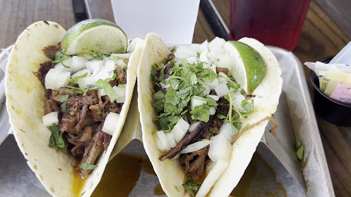 Now, letâs talk about why weâre really here â the Brisket Barbacoa Tacos. When they hit the table, they ainât playing around. You get two classic street tacos, built honest and simple: a heavy-handed pile of slow-cooked brisket barbacoa, so tender it basically apologizes to your teeth for making them do any work. They top it with diced onion and fresh-cut cilantro â none of that sad, wilty garnish nonsense â and drop a lime wedge on the side, like they know youâre gonna need a little acid to cut through the glorious meat tsunami youâre about to unleash.