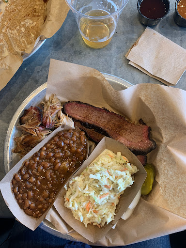 If I could give zero stars I would.. if anything this one star is for the blue angel drink I ordered. Where do I begin.. we were seated at the beach at a table on an annoying slant, but there was no other table available at the time and my husband and I were hungry. After about 10 minutes going by without menus, or a single acknowledgement we were finally asked by a waitress if someone was helping us. Zero organization with the wait staff and the tables they are supposed to be managing. She asked us if we were able to pull the menu up on our phones, but we didnât even realize we were to do that. She brought us over a napkin holder with the barcode to scan to pull up the menu and complained that it shouldâve been on our table. We asked her to get us some water in the meantime. After she walked away another waitress came over and asked us if we needed help.. again no communication or organization. 10 minutes later we got our water, and we ordered our drinks, and an appetizer. I asked her if she minded that we placed our meal order too, and she responded with a, âif you want.â Well ok. She asked if i wanted any sides with my meal, and I inquired if it was included. She said, âno but you can still get some if you want them.â I ordered a side of potato salad with a 1/2 rack of ribs. My husband ordered pulled pork with a side of mac and cheese. The drinks, and appetizer (loaded tots) came out within 5 minutes. The tots were completely slathered in creme sauce. After she dropped the app and walked away we realized we had no utensils. There was no way you could eat this app without them. There was not one worker in sight for 5 minutes until our food came out. I asked the food runner if we could have some utensils and sauce.. NO sauce was given at all. As soon as we got our utensils, and started to eat we realized how absolutely grotesque our meals were. My ribs were a brownish green on the bottom, and completely dry. I could barely bite into it it was so hard. Disgusting. This was BBQ?! My husbands pulled pork was so greasy he couldnât even handle two bites! His mac and cheese also looked like milk coated oily noodles. This was a horrendous experience! When we spoke to the manager she did mot seem at all surprised with our complaints. We refused to eat anything, and she comped our drinks so we could get the heck out of there! What a waste of 40 minutes, and a major loss...