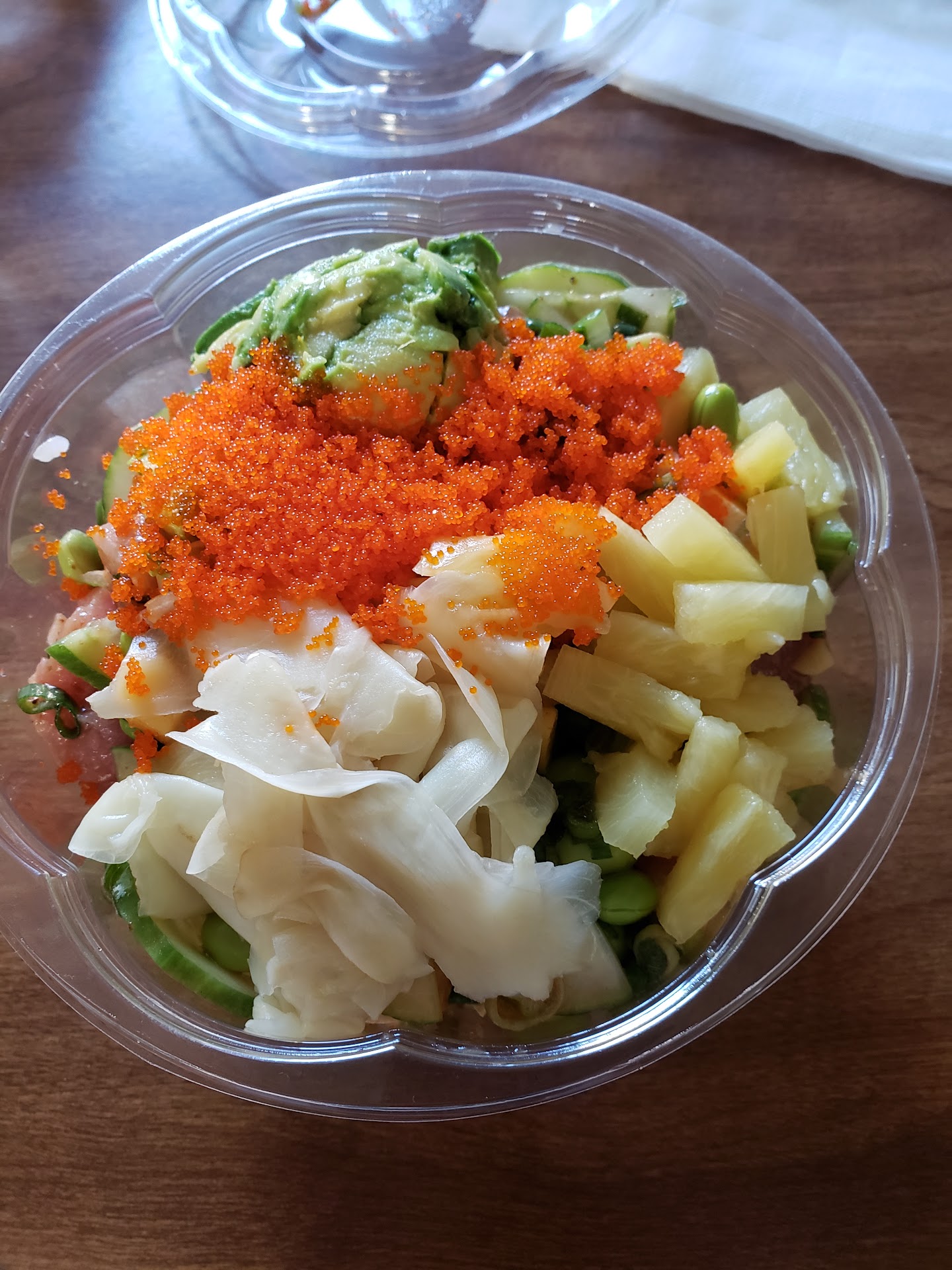 âFreshâ Sashimi comes prepackaged like American cheese and didnât taste like real tuna at all. Salmon teriyaki bowl - dodgy fish, good mix ins, but it was absolutely drowned in sauce. More of a sauce stew or chili rather than a true poke bowl Matcha latte: tasted like a warm Diet Vanilla Coke masquerading as a matcha latte