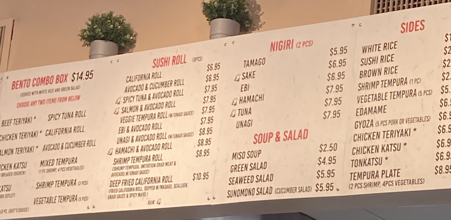 Food; food was okay, the California rolls were decent, but if you genuinely want good sushi, I recommend you go to - Quick sushi (my favorite place, and their prices are more reasonable). The ramen, not a fan for it being 20 something $ it felt like store bought noodles (watered down, no flavor and noodles were too chewy) very dissapointed but never again.