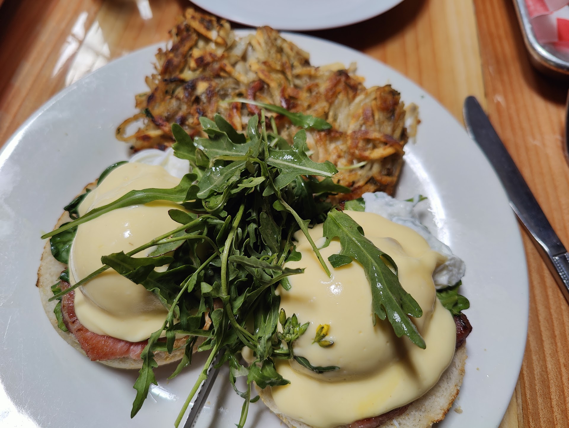 Read moreI am not sure if what we experience is abnormal but they have an incredibly inefficient way of running this place. We walked in and there were 3 groups in front of us (2 & 4 tops). We stood in line but there was little room in the entry way and after thinking I was waiting for the hostess, I realized you order at the "host" stand. So, there I am sitting in line with no idea how long of a "wait" there is. I had 3 young kids, who lost interest in waiting after about 10 minutes. At this point, I didn't want to leave because was hungry but I also had no idea how much longer this would take. After about 25 minutes, I got to order. I only ordered one $22 pancake plate for my 3 kids (2, 5 &6 ) because I figured they would be large and they already had fruit for breakfast. So, I pay and am expected to put gratuity on the bill even though I haven't even received any service at this point. After working in the industry for decades, I find it ridiculous that someone suggest I pay a tip for service before getting the service. The 5 of us were sat at a 4 top but we squeezed the baby in-between us. I ordered 4 waters and a coffee. They brought 3 for the kids and the coffee, nothing for me. Food arrived in a reasonable amount of time. My food was nice, the breakfast sandwich my husband got was on supermarket bread and could have easily been made at home. The big stack of pancakes were not huge, let alone large (for $22, I expected more) and there was barely any fruit on them. My older kids (who are not big eaters) ate them and were still hungry. I would normally have placed an order for more, but that would entail me having to go back to the front, stand in line to pay another $22 for below average pancakes. I know everything is expensive but that is ridiculous. So we left and went and got a snack...