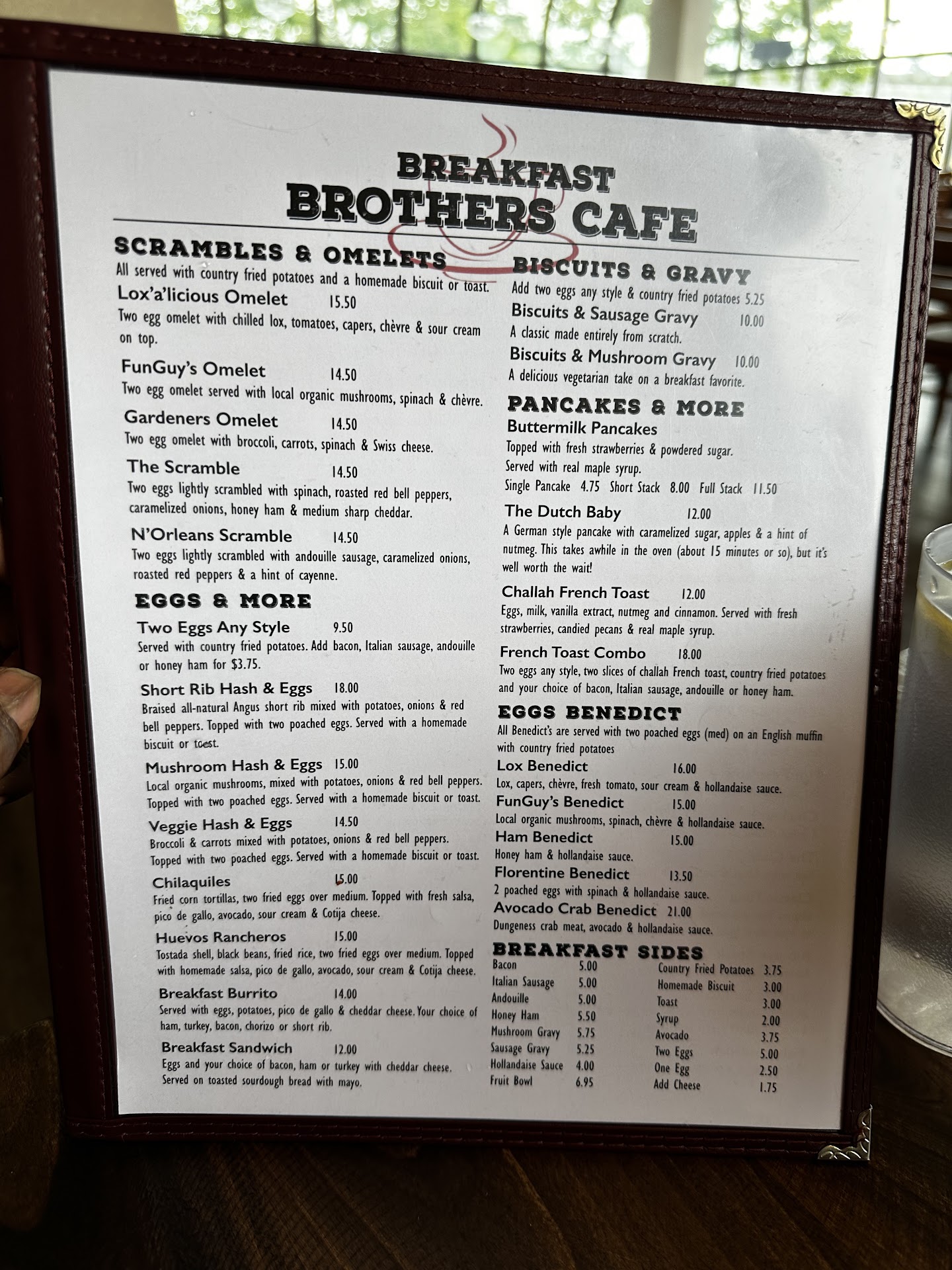 Read more"Excellent food and service with some serious strengths and a few weaknesses. The staff were attentive and friendly throughout our meal. The French dip is exceptional with tender beef, flavorful caramelized onions, and cheese on a perfect bun. The meat was well-seasoned and juicy, and the bread was toasted to perfection. We also enjoyed several other dishes, including the short rib hash with perfectly cooked bits of beef roast and great potatoes, the veggie hash, Dutch baby, crepes, and beautifully seasoned breakfast potatoes. However, the hollandaise sauce was not traditional, and its texture was slightly grainy due to thickening. It lacked velvetiness of the classic egg yolks, butter, and lemon emulsion. While this would normally be a deal breaker for me, there were so many other great dishes that I have to let it go. The biscuits and gravy also fell short as the gravy was bland and did not taste like it was cooked together with the sausage. Instead, it tasted like thickened canned milk and some sausage sprinkled in it after-the-fact. That being said, tastes are subjective, and while four of us disliked the hollandaise sauce, my friend enjoyed the gravy. So perhaps you will too. I can’t wait to try the Reuben sandwich next as I can tell by the cooking style that it's going to be excellent. Based on our experience, I'm sure it will be another standout dish...