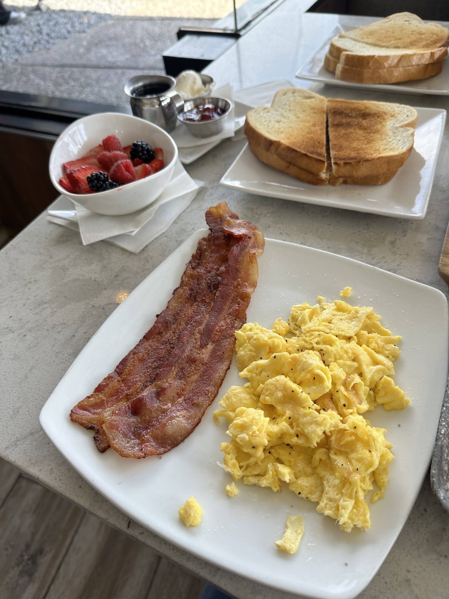 Read moreConflicted review. First visit wasn't good.... Bacon always overdone and too salty. Toast was too hard, and so was the biscuit. Gravy was undersalted/under flavored. My friend had a hair on her toast, and when I ordered a flight of mimosas I only got one.