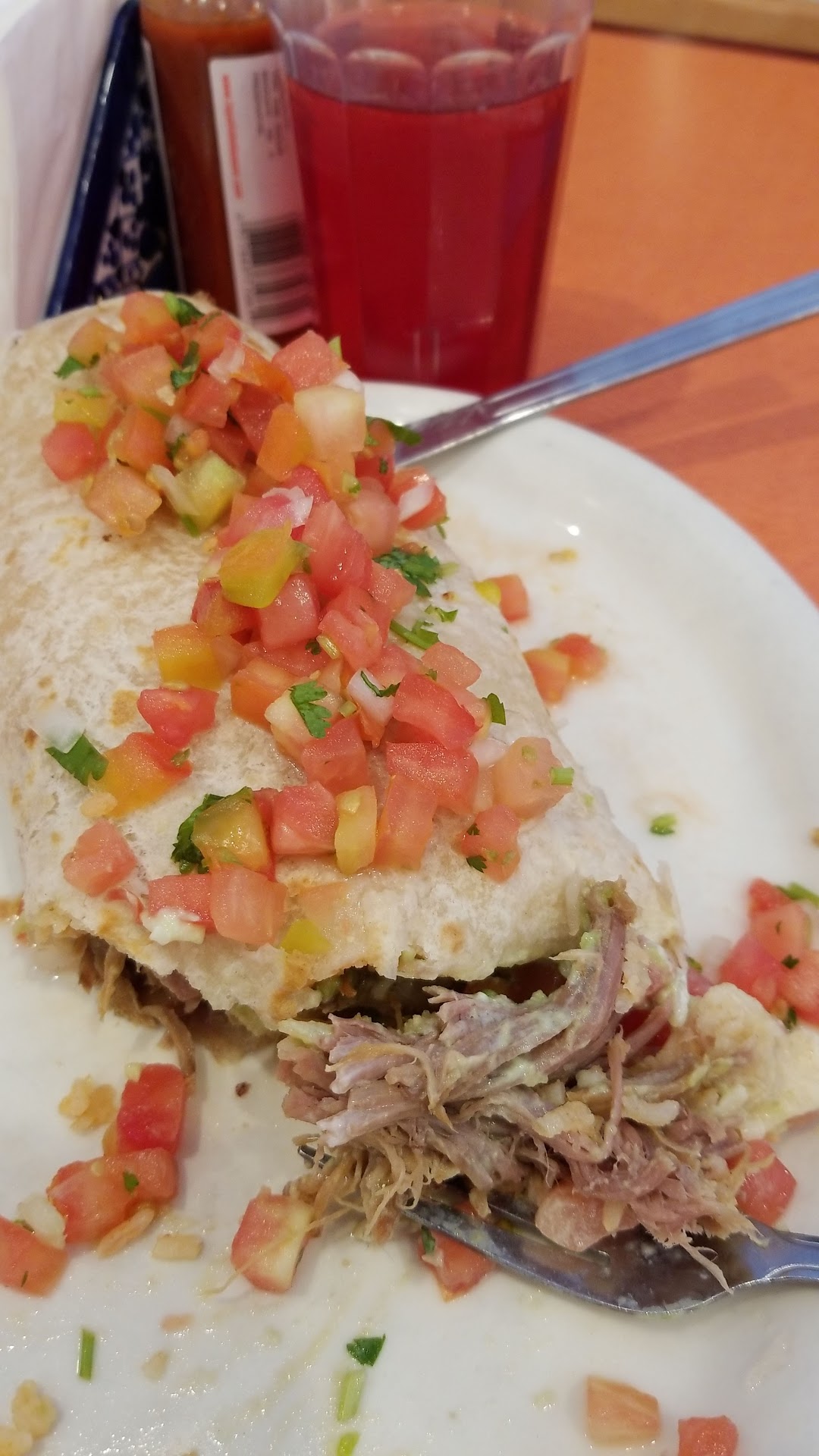 Read moreAuthentic Mexican food? Sure. Prices, a little high. $10 for a basic burrito, $12 for the super upgrade. The food was average. The salsa bar with two varieties of Pico de gallo was excellent. The staff was ok, but couldn't explain things in English. It's a clean restaurant. The weekday lunchtime line is lengthy. Prepare to wait to order. Nobody comes to your table to take your order. The atmosphere is seating at long tables but there are also private booths or counter seats. The bathrooms are along the side of the building, not inside. You will need a key. The food? My carnitas super burrito was standard. I added salsa from the salsa bar to add some taste. I've had more tasty burritos elsewhere. This restaurant receives...