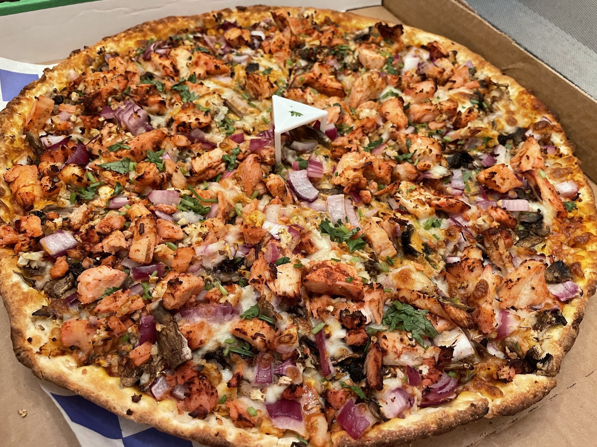 Read moreI ordered the special 2 large 3 topping pizzas off of the website. One pie with thin crust and the other with hand thrown crust. First impressions are that the large pizzas are actually a medium, but this is common with chains. The amount of cheese on both pies were fine, but they both could have used a touch more red sauce, so a tad dry. All of the other toppings were just too sparse. A single handful of each of the 3 toppings on both pies would have made them so much better overall. It is nice that you can actually get fresh spicy green chilies on the pizza. Most places just use pickled jalapenos which have barely any heat and just taste pickled, so fresh green chilies is a plus. There was no difference that I could tell between the thin crust and the hand thrown crust. My guess is that they made both pies with the hand thrown crusts instead of what I ordered on the website, oversight. I really was interested in ordering their pizza twist versions, but before I tried those I wanted to at least get a taste of their traditional pizza. I hope next time will be an...