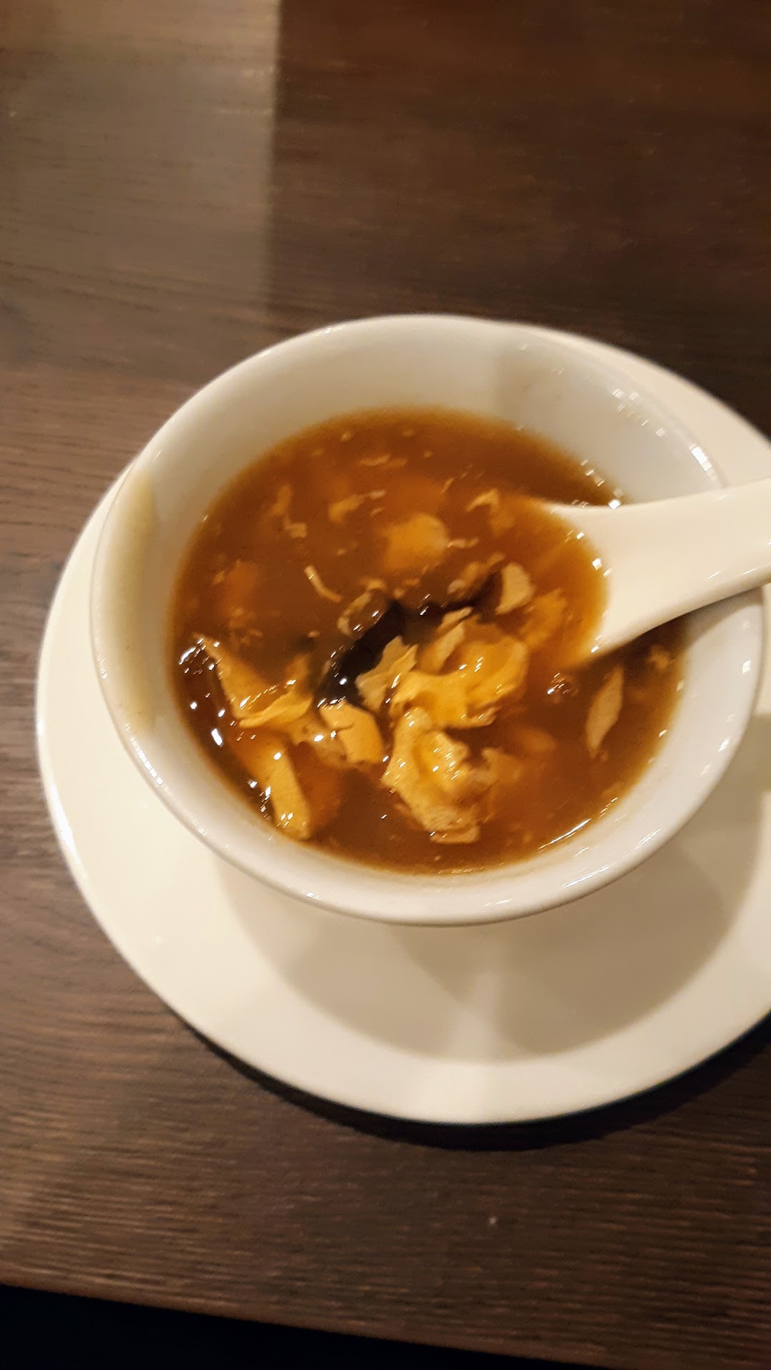 The hot and sour soup was really good. A bit heavy on the green onions for me but not off-putting. The egg roll was a bit lackluster but good. The Orange Beef was amazing!