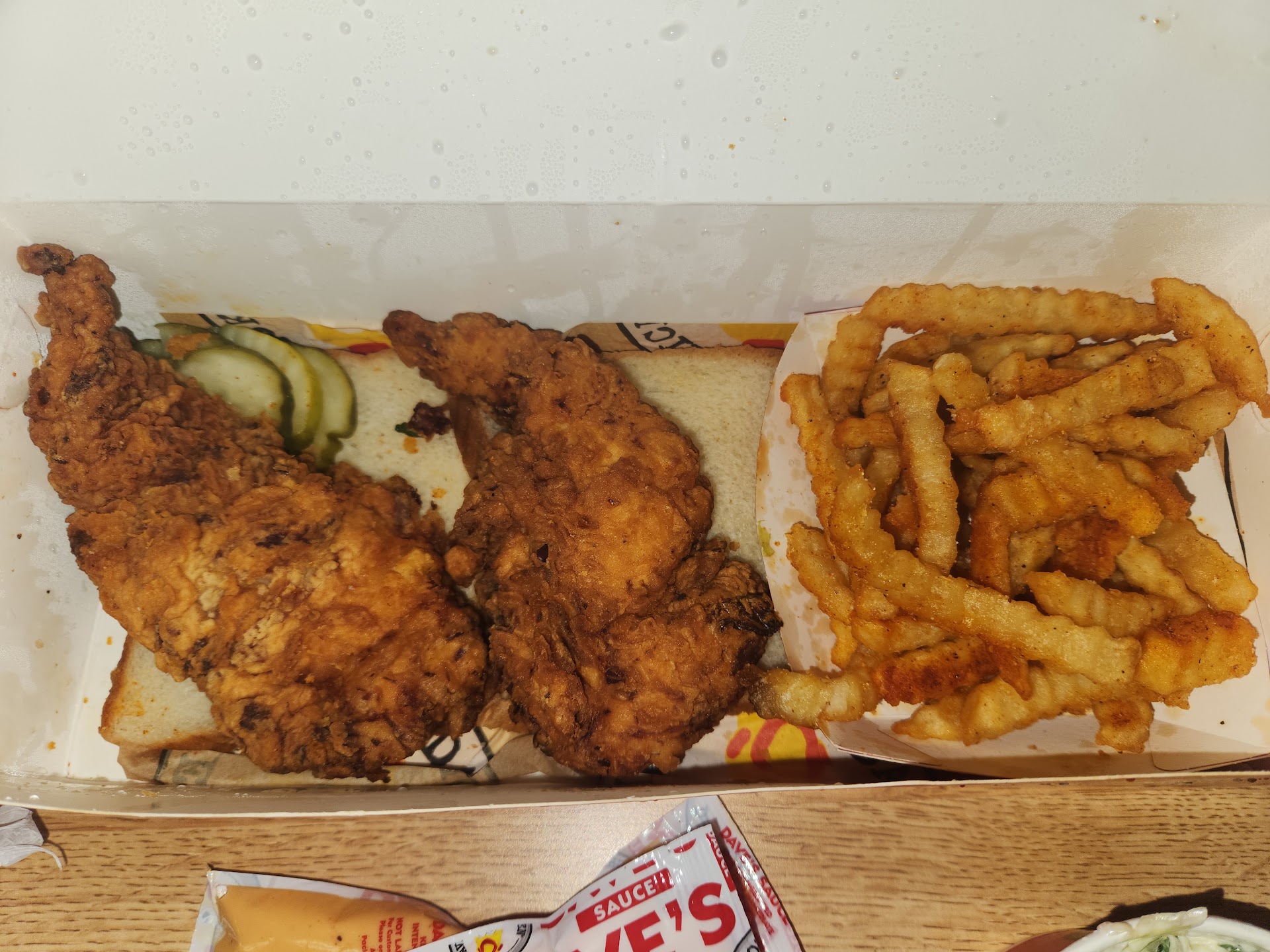 Read moreI was told about Dave's Hot Chicken by a co-worker. I kept putting off going and finally did. I am stuck on the tenders. Literally STUCK! I have been there a few times, ordered delivery a few times (was way to hot to go there - so delivery).