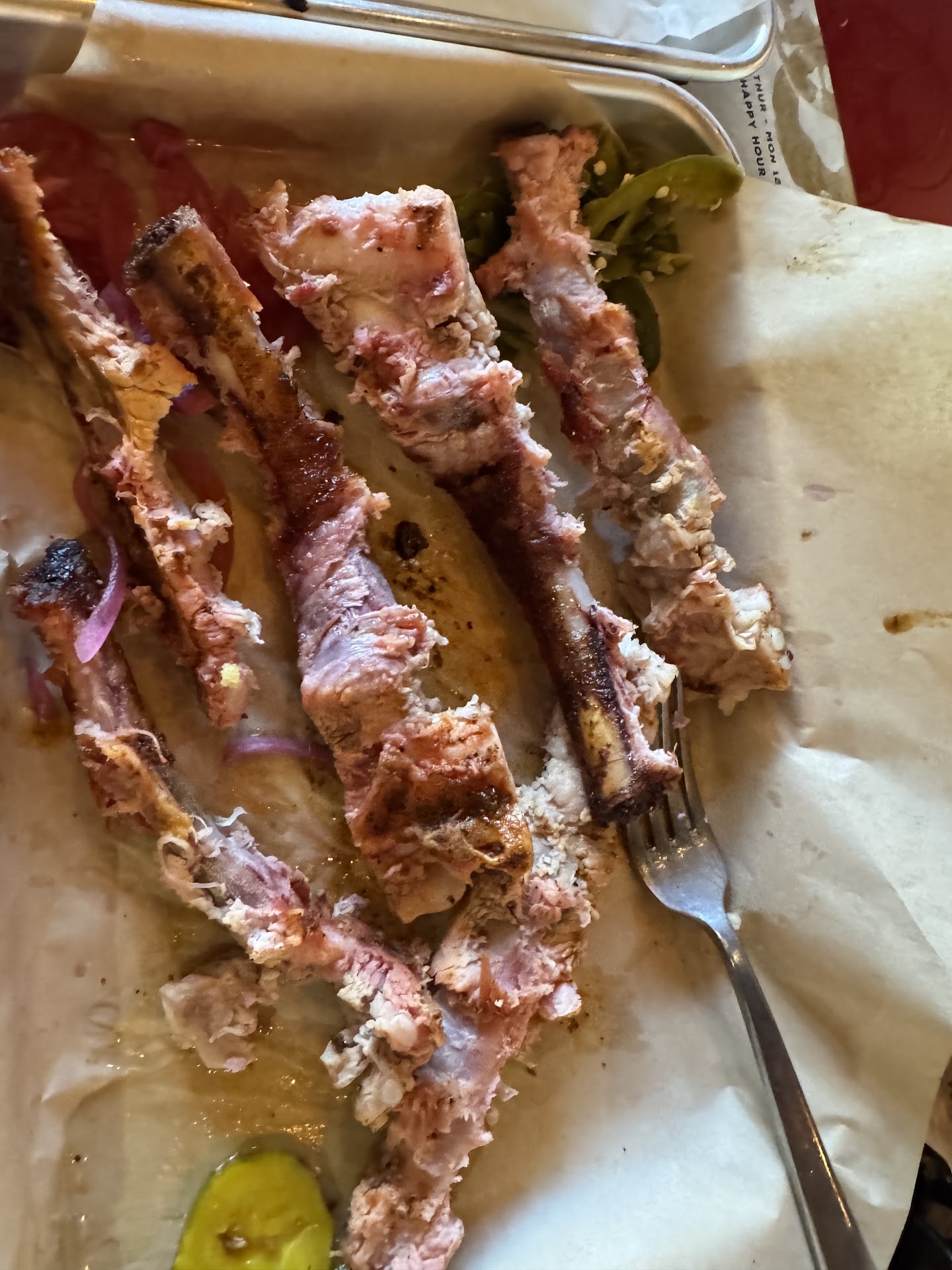 Read moreMy family and I decided to dine here a few weeks ago for dinner. We were instantly greeted and taken out to the patio to be seated. All staff were fabulous, nice and attentive. Once we started looking at the menu we were very confused. The menu was very hard to read, some items were written on separate lines so it was extremely difficult to figure out what ingredients were in what dishes. We eventually had to ask the waiter for clarification. Once we all decided what to order they were out of a lot of different items.. which was odd since we went during the week and went for an early dinner. I'm not sure if it was an ordering issue, they were still cooking these items or what but it was very disappointing. Once we received our order a lot of our sides were missing. We each had to ask for our sides, even though they came out quickly I feel that each person's meal should come out complete. But the Major issue was the food. All the meats were extremely dry and extremely salty. Especially for me and I can handle a lot of salt and this was beyond anything I've ever experienced. I tried desperately to add coleslaw to my brisket sandwich, dip it in the BBQ sauce they brought but nothing helped. Everyone kinda just picked at their food and then all asked for togo containers. I asked the waiter for 5 boxes, he argued that we only needed 4 since their were 4 of us. I said I would love an extra for my coleslaw, he said no, just take the container it came in. Which I thought was odd. After that we paid the bill and left with not a good taste in our mouth overall. We will not...