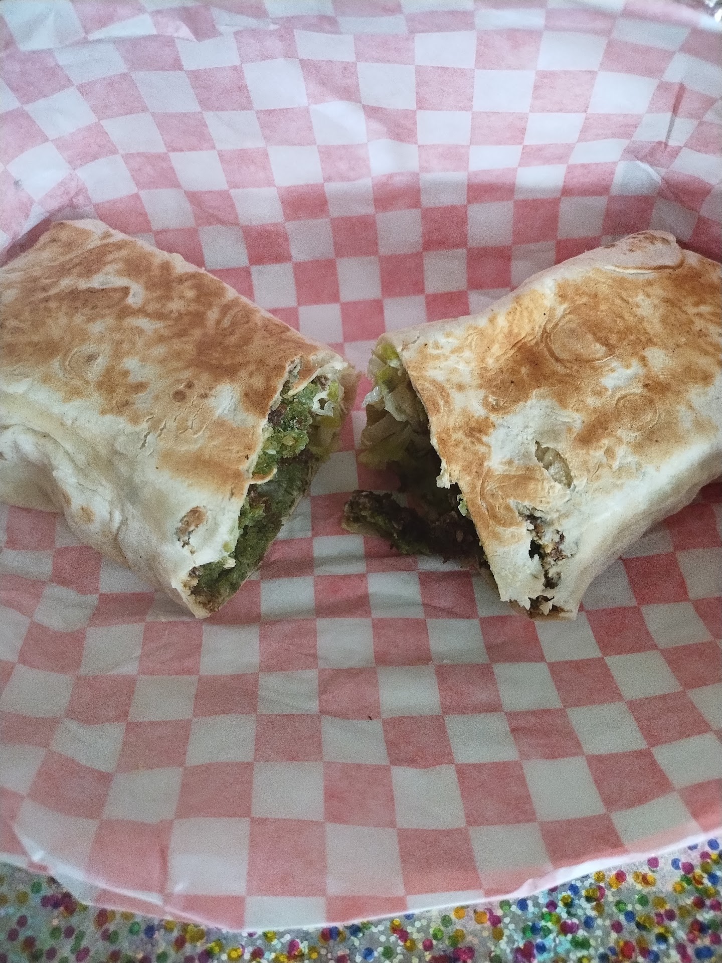 Read moreAuthentic Mediterranean food b.s. if u dont know what "Authentic" means. Horrible I ordered 2 lamb gyros sauce on the side they were covered in sauce. Then 3 guys came in after me ordered 3 gyros and were "in a hurry" so the lady working jumped them ahead of me; so nice of her. Apparently she decides who's time is worth more. I literally watched as my order was almost finished the guy was about to wrap them up she stopped him makes him add sauce to them and quickly make another 1 so they could go to the 3 guys that ordered after me, horrible customer service. Then it took almost 5 more minutes to make my order wrong just so impressive. The "lamb" was ground pressed frozen meat. They have pics like they are cooking the meat like this that is a total lie. If I wanted low grade meat I wouldn't have gone here paid $15.00 each for processed frozen meat. The only good thing the place seemed clean but the food and service horrible and I'll never go back. The second pic is of the pool of sauce in my "sauce on the side" wrap....