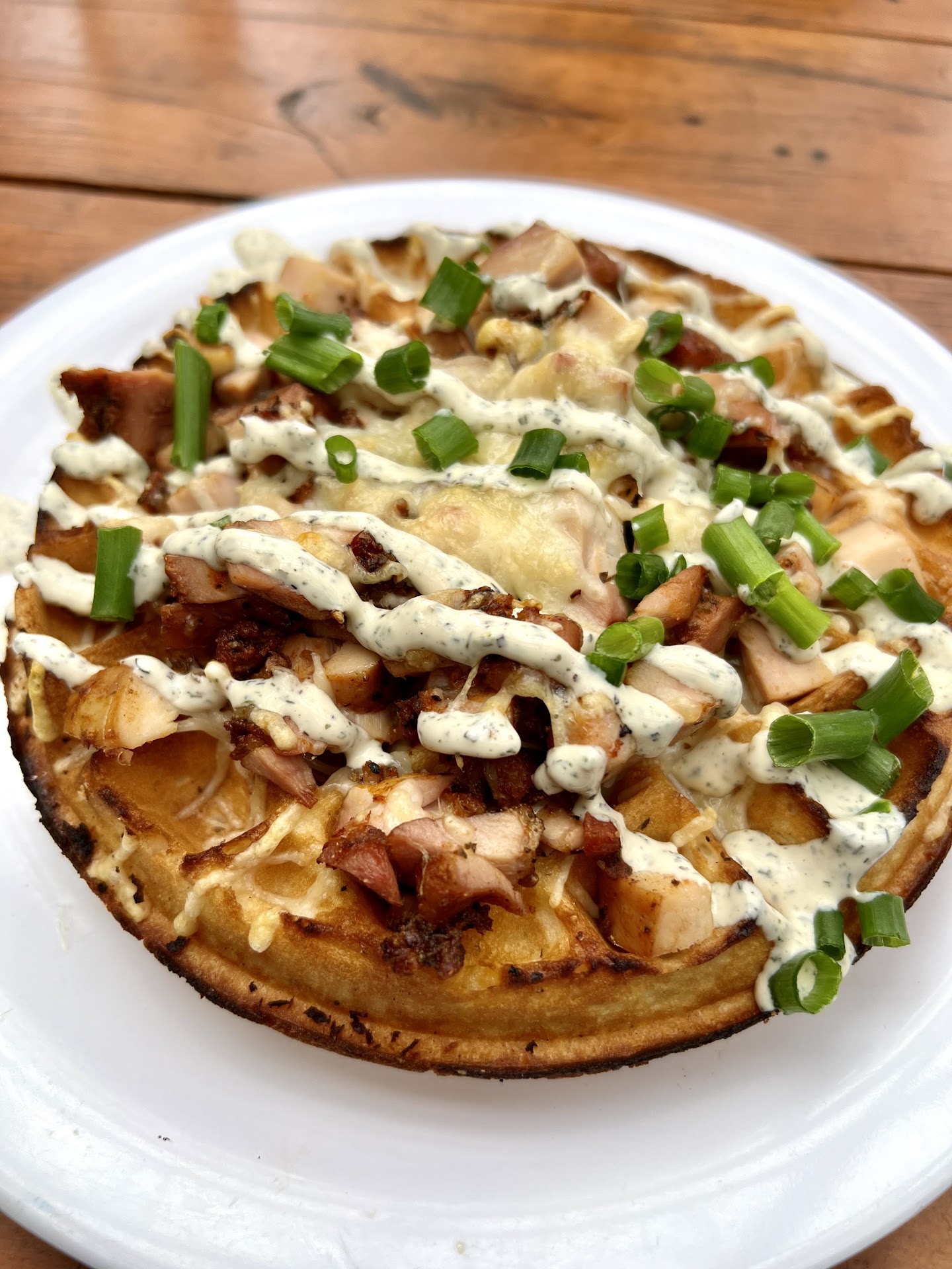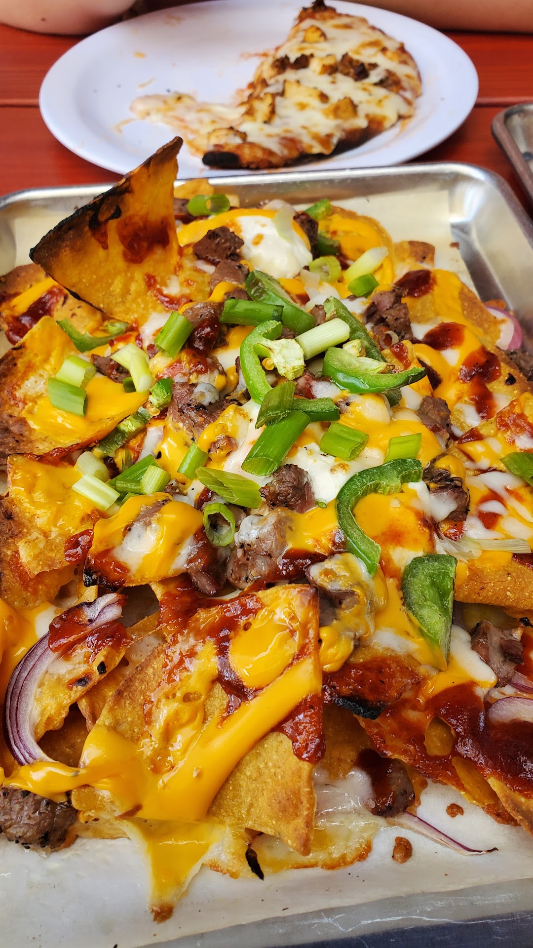 Read moreWent today, a Monday, around 2pm. Asked if it was ok to have my puppy with me outside on their patio, and they accommodated. Didn’t like that we had to order everything from the bar, we had a total of four dishes plus drinks. The beer I ordered was great, a strawberry sour. Very sweet but also very tasty. First to come out was a half pound(should’ve just said it was a half dozen) of their wings and a margarita flatbread. Wings were a good spice with their dry rub and medium buffalo sauce. The flatbread had a good flavor with the balsamic glaze, but little to no basil and too much sauce. Both dishes were cold to the touch. Next to come out was tri tip tacos and a veggie sandwich. Also both dishes were cold. If I had a slogan to go with this pub it would be. “Our beer is cold, and our food is even colder!” I could see that this place looks like it accommodates the after work crowd of 20-30 somethings who probably could care less if their food comes to them cold. Just as long as their favorite sport is playing inside at the barstools. I give my all round experience a...