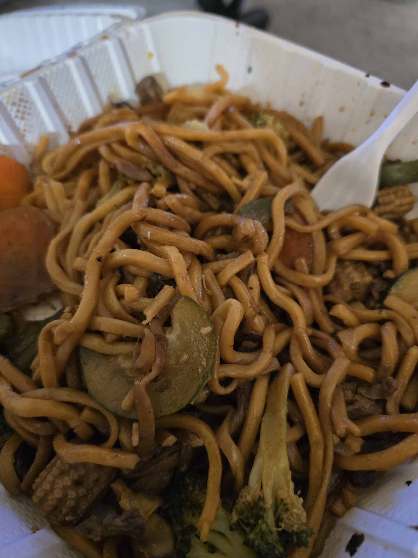 Read moreHonestly, you get a lot of food. But a large quantity isnt always better. It is nice that you can put as much veggies or meat in as you want. But the flavor was so watered down, it didnt taste good. I only had a few bites and gave thr rest to my husband, who dowsed it with sauces to make it edible. I am not sure if you are vegetarian or vegan, how cross contamination wouldnt be a thing. They only use one cooking stone thing, and it isnt cleaned before the next customer. The people are nice and helpful, but the flavoring is where this score is coming from. Just so watered down. My coworker got it as well, and we both agreed on it. Not sure if the noodles are...