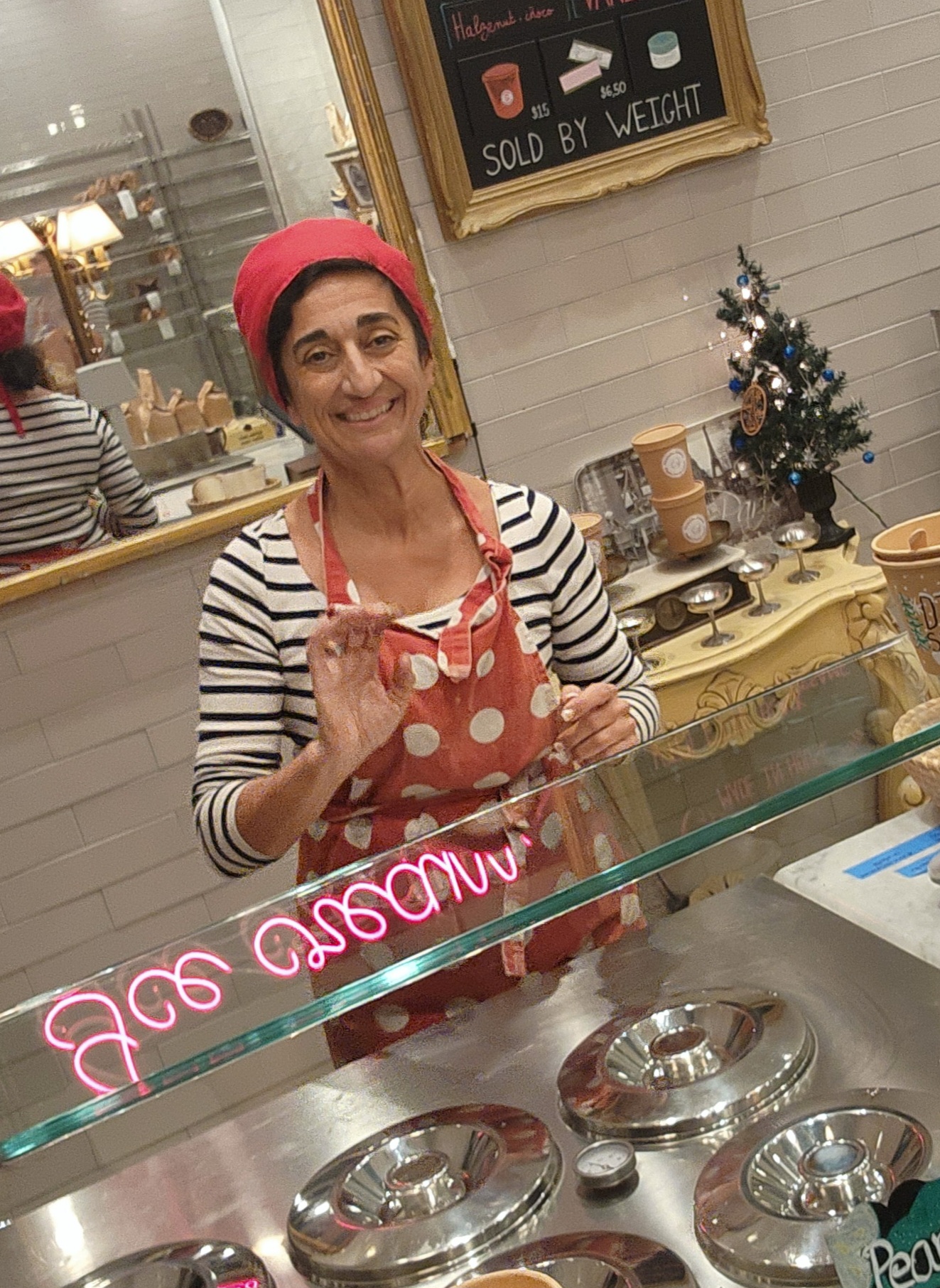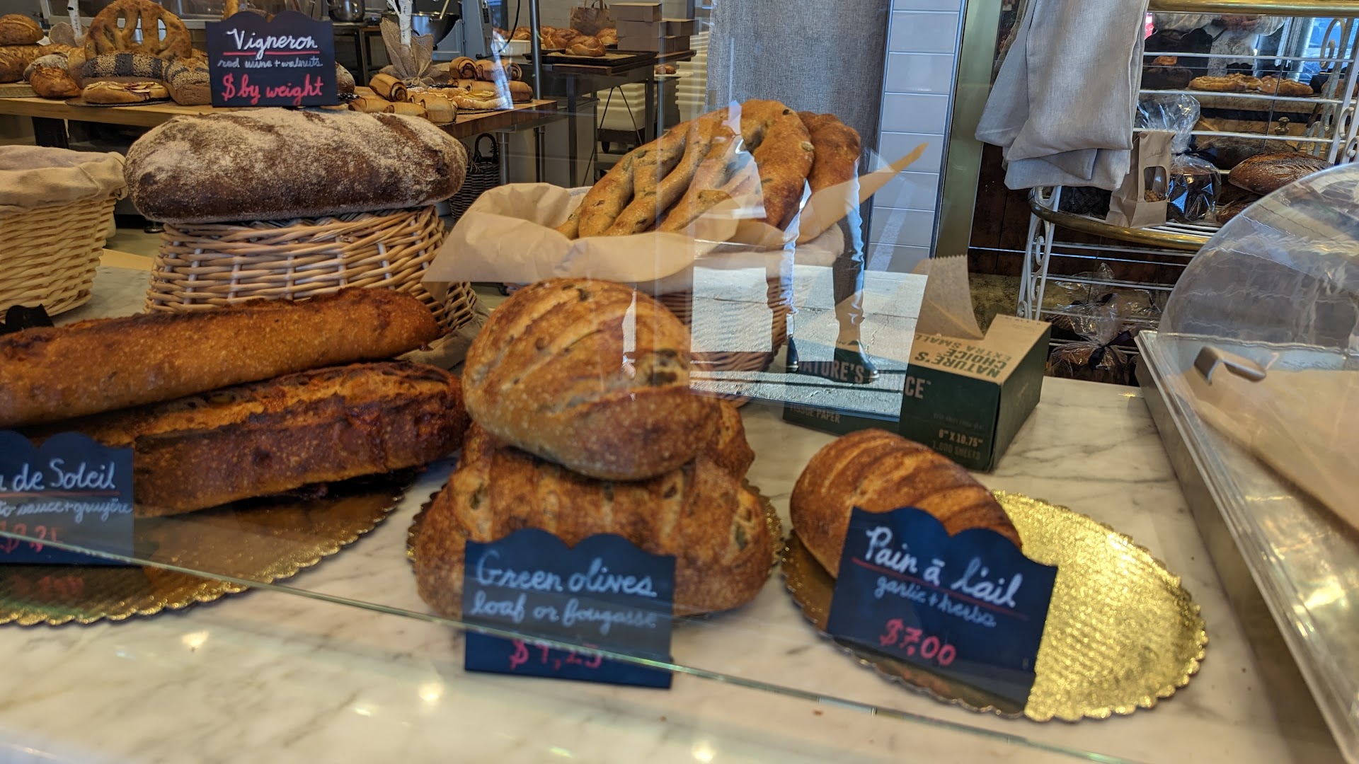Next, every time I've been there (and I'm a pretty regular customer) the owner gives an enthusiastic "Bonjour monsieur (or 'madame'), comment allez vous?" to every customer as they approach the front door. I've never seen a business that so consistently makes EVERY customer feel welcome and special, like they are genuinely overjoyed to see that customer. Personally, I'm a pretty jaded and cynical personality, so I tend not to see that kind of thing as genuine, but somehow she carries it off. It feels absolutely sincere, every time she greets a customer.