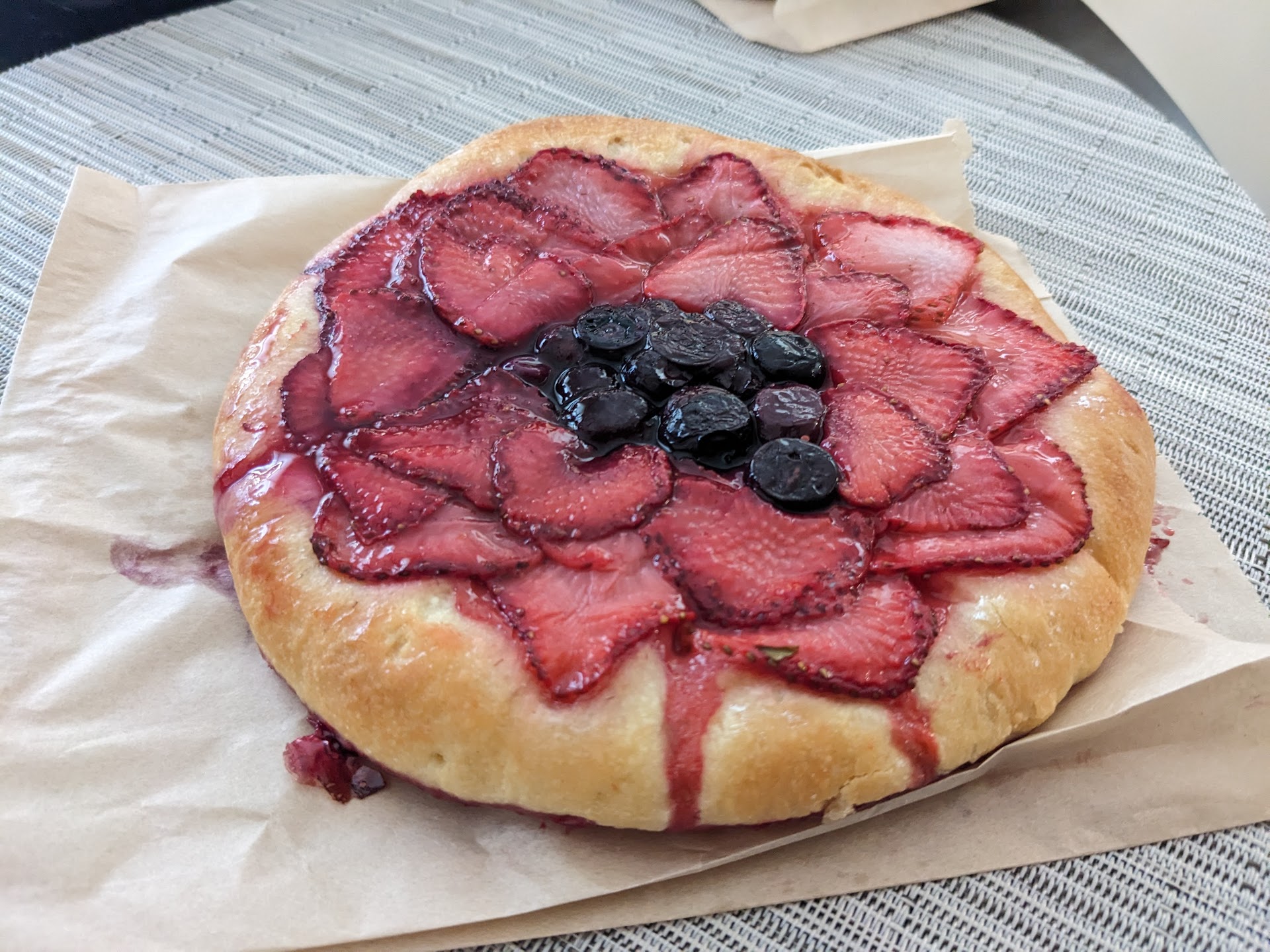 Read moreOk, so this place was amazing food-wise. The bread was good, fresh, and obviously homemade. I loved their pastries and the variety they had. They looked well crafted and they definitely tasted well crafted. I, personally, got two flat pastries. The first one is a strawberry dessert with blueberries in the center and the second is a flatbread-type pastry with caramelized onions, baked cheese, and parmesan. Both were amazing. I will say, this is not a proper lunch place so definitely keep that in mind before coming. As for the service and atmosphere? Somebody came out to give us samples as we were waiting in line, which is already a plus, and the style was so very "little French bakery" that I loved it. Let me tell you, this place was better than some of the places I went to in Paris. Now, on to the couple things I didn't really enjoy. The first being when they open, because, opening up at 1:30pm can be really difficult for customers to come by especially when they live out of town but work in town and they just don't have time. The second is the way our cashier packed our bag. I don't know why she did it, but she put my two flat items (easily crushed items) on the bottom of the bag and put five different items on top. Getting my strawberry pastry out of the bag became an excavation project. Please please please bag this better! The third and last thing is probably the price. A single pastry was around 8-9 dollars which can be a lot of you add more things. Definitely a pay-for-the-quality place. Overall, I loved this place and it has earned its spot in...