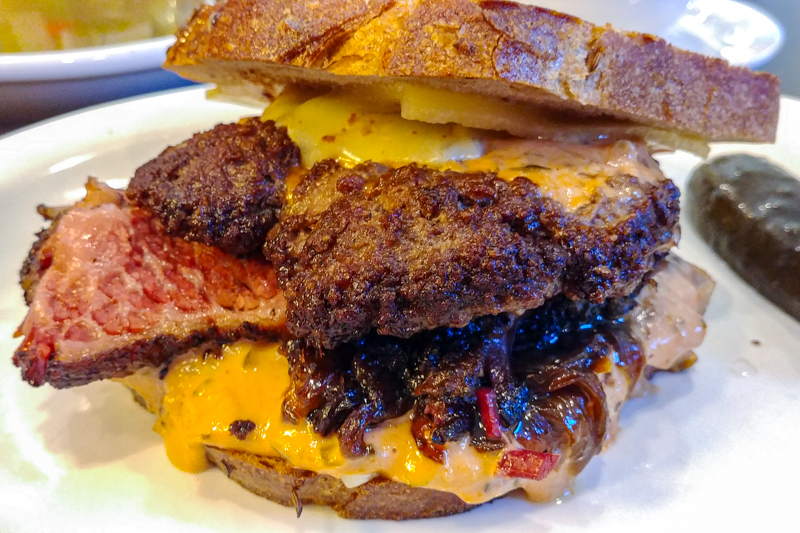 Read moreWe ate here for dinner last night and the food was so good we opted to go back this morning where there was a big to-do about our lack of a reservation. (Imagine being promptly seated on a Saturday night, but no seats at 10:15 for breakfast. And by no seats, I mean 1/3 of the place was empty but being held for later reservations. The breakfast menu was small anyway, but did have a couple of things I'd have been interested in having. They said we could wait "about 30 minute" which didn't work for us.) The lunch/dinner menu is fairly large and somewhat unusual in it's variety of offerings. I had chicken kebabs (dark meat, skin on = divinity), husband had a footlong hot dog fully loaded (dare I say gourmet?), and the kids opted for matzoh ball & chicken noodle soup. (I tasted it and it was phenomenal.) I had also been eyeing chickem schnitzel. Not knowing how big the portions were, we had also ordered a smoked meat platter, that was literally large enough for a meal in and of itself as it comes with a variety of bread, crackets, pickle and spicy mustard. The corned beef and pastrami were amazing, and the smoked turkey was delicious.... and the liver too! We ended up taking part of that back to our hotel to snack on later. My cocktail "Kind of a Big Dill" may be a new favorite. My son said this was the best food we've had since being in California, and I agree it was among the best. They have a really cute interior but we sat outside on the grass patio since the weather was fair. Highly recommend, but make a...