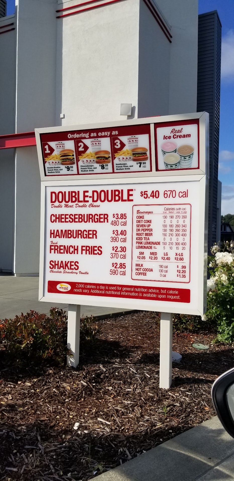 the short menu which consists of a burger with one patty, a burger with one patty and cheese, or the "Double Double" — a burger with two patties and two cheeses. They also have french fries, the 3 Napoleon flavors of milkshakes and a line up of Coke-a-Cola soft drinks to choose from. (Tip: if you order the largest size coke they have you're going to get a half gallon of soda, so unless you're thirsty, and don't have diabetes, just stick with the regular size).