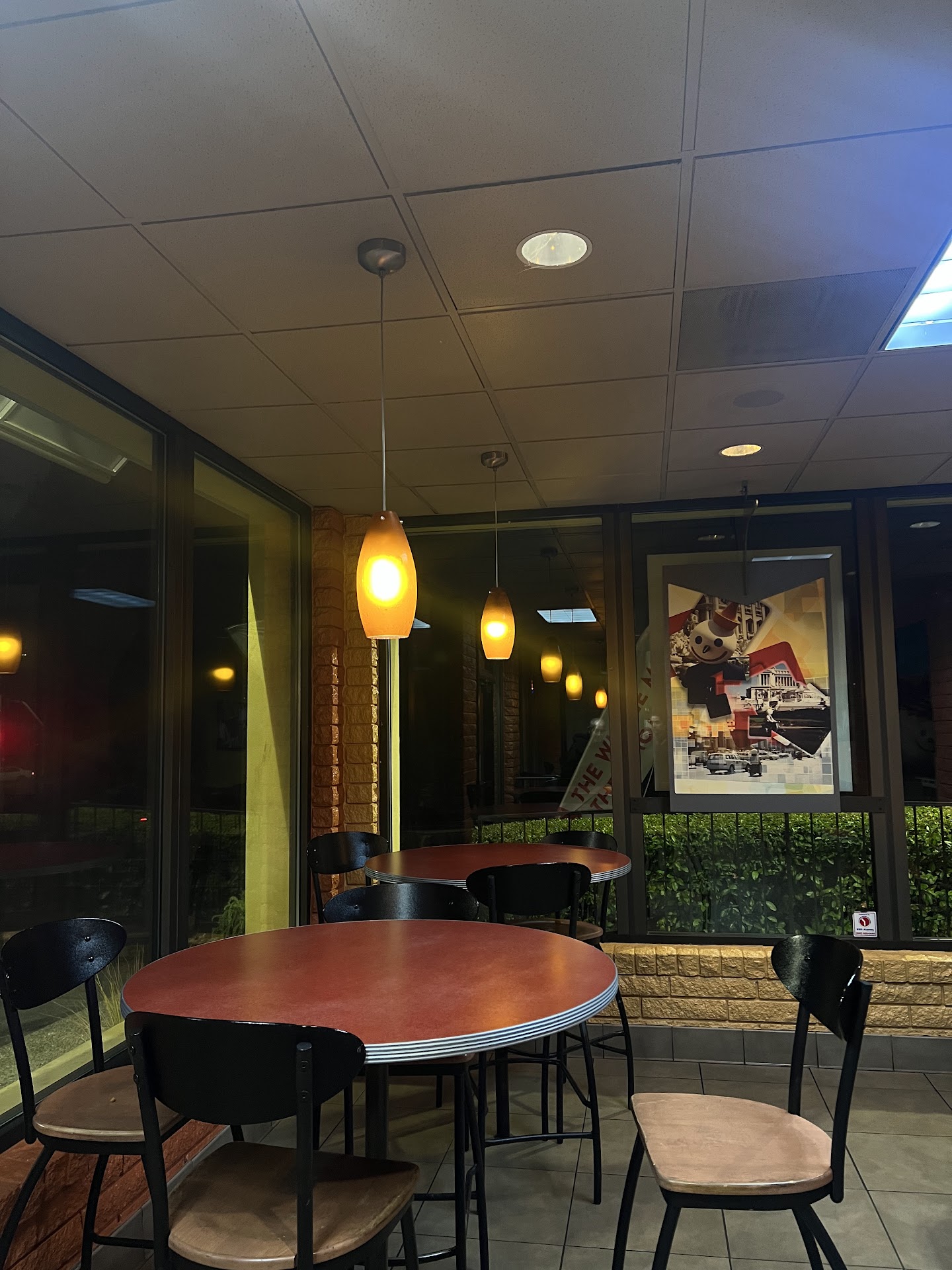 I enjoyed the decoration of this specific Jack in the Box although it was dirty with leftover trash from previous customers. I did not however enjoy the fact that they had two restrooms, but only kept one of them open. The one they kept open there was no lock it was completely taken out and the hole was covered with a napkin. This is not right. Customers need to feel comfortable in the privacy of their bathroom break. I even asked an older Hispanic gentleman if I could use the other bathroom, but he rudely refused. The prices are also becoming less cheap. They have a kids menu as well.