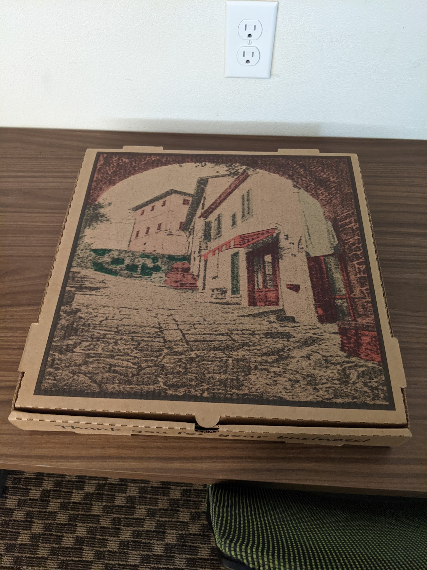 The pizza was obviously a frozen pizza they heated up. I would’ve done better to buy a hot pocket at the gas station and heat it up in the microwave. It was so freaking greasy, I couldn’t even eat a whole piece. And once it was put on the table, I asked for a plate. And the server threw a paper plate at me.