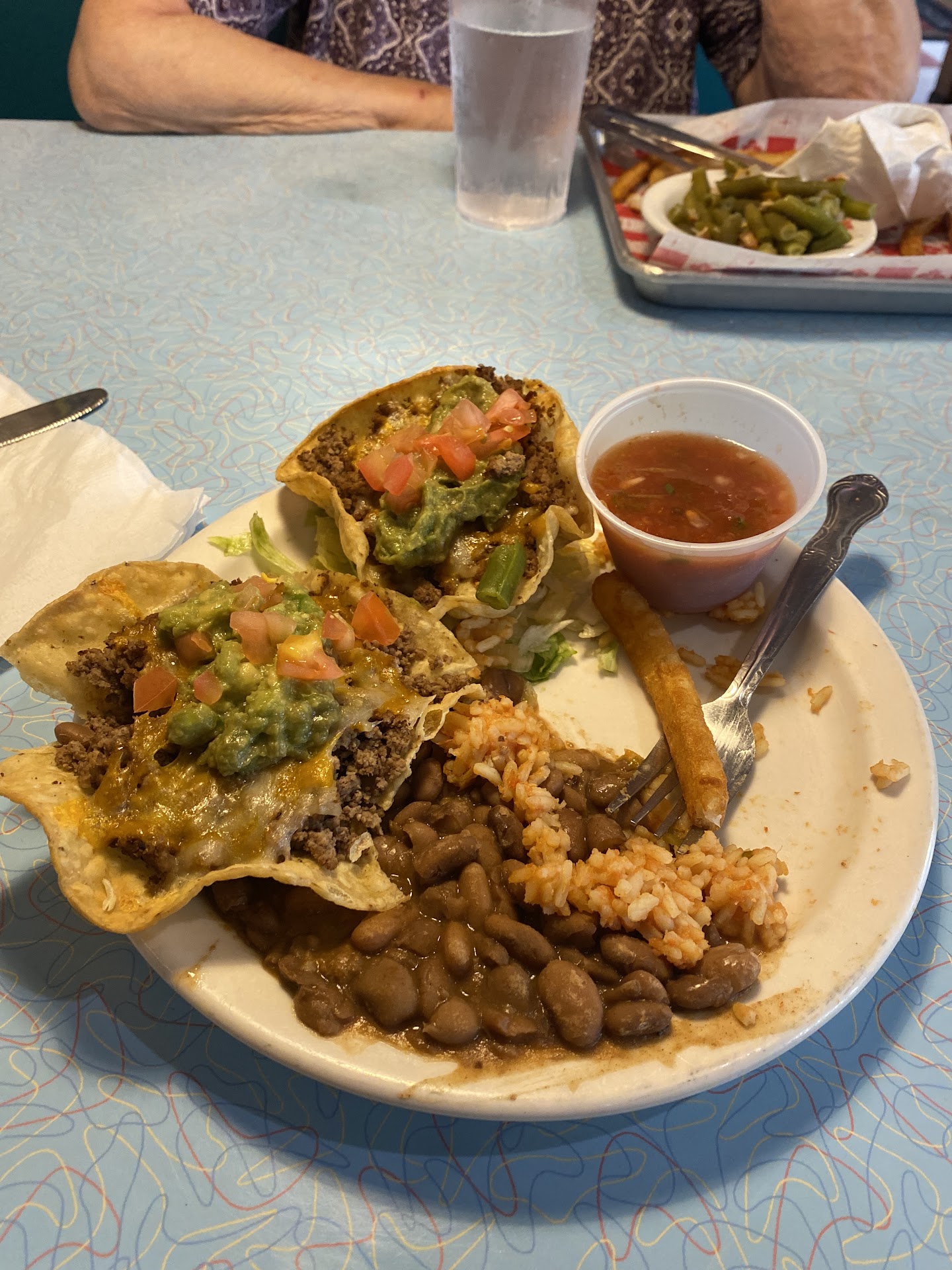 The taco plate was absolutely disgusting. The beans were fresh out of a can, and not even warm. The rice was congealed, obviously pre-prepared and disgusting. The tacos had stale old shells.